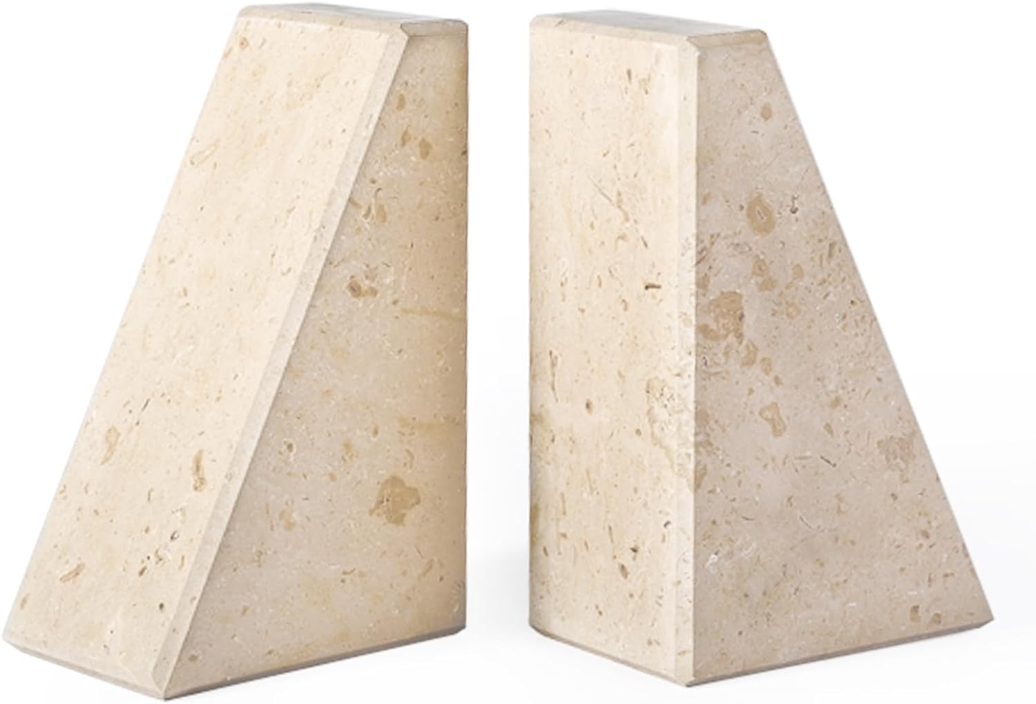 Marble Bookends for Heavy Books, Decorative Book Ends for Shelves, Beige Stone Durable and Heavy-Duty Book Ends for Hardback Books & CDS, Unique Book Stopper & Holder, Set of 2