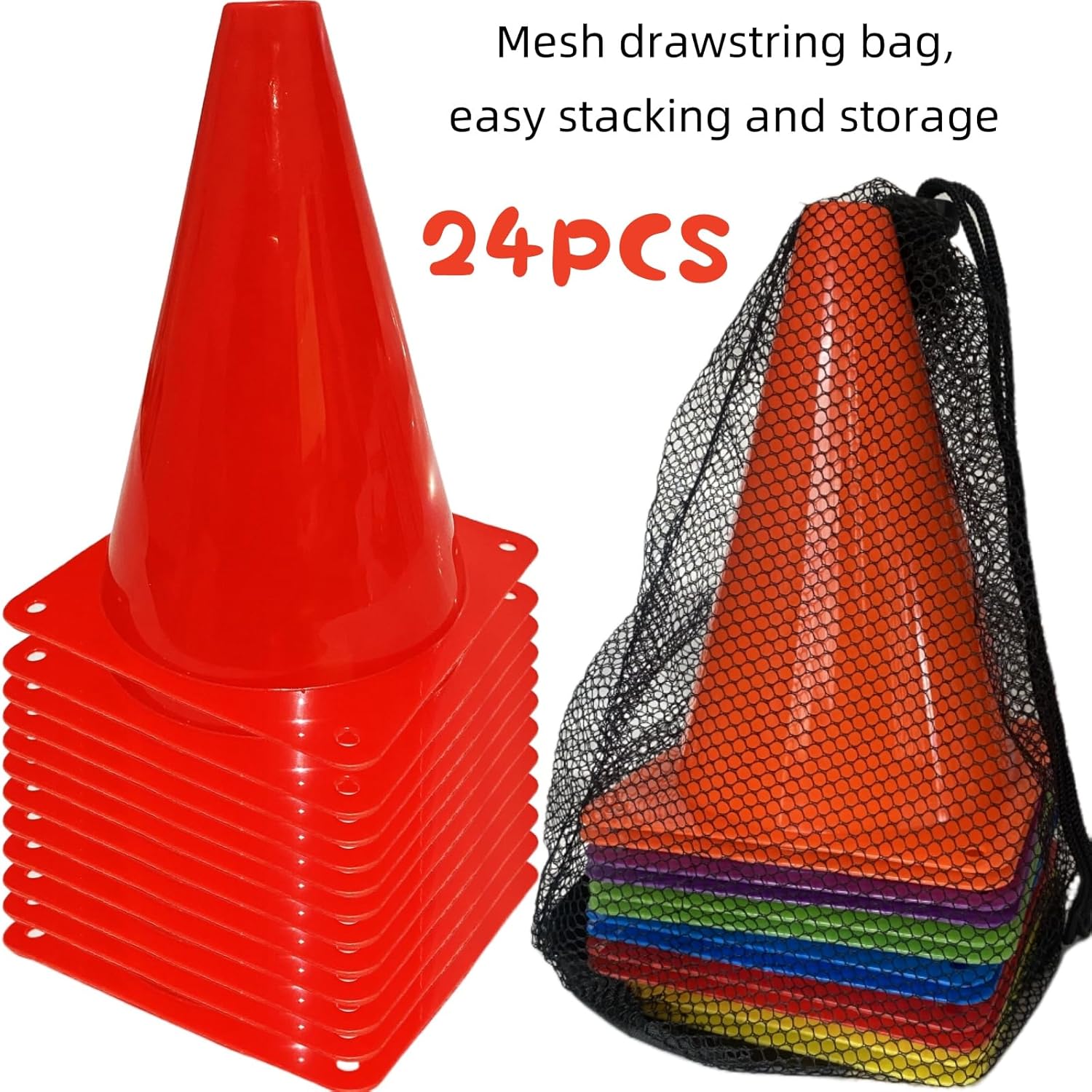 24 Pcs 7 Inch Plastic Traffic Cones, Basketball Football Drills, Skating, Sport Training Agility Markers, Indoor Outdoor Games, Multicolor