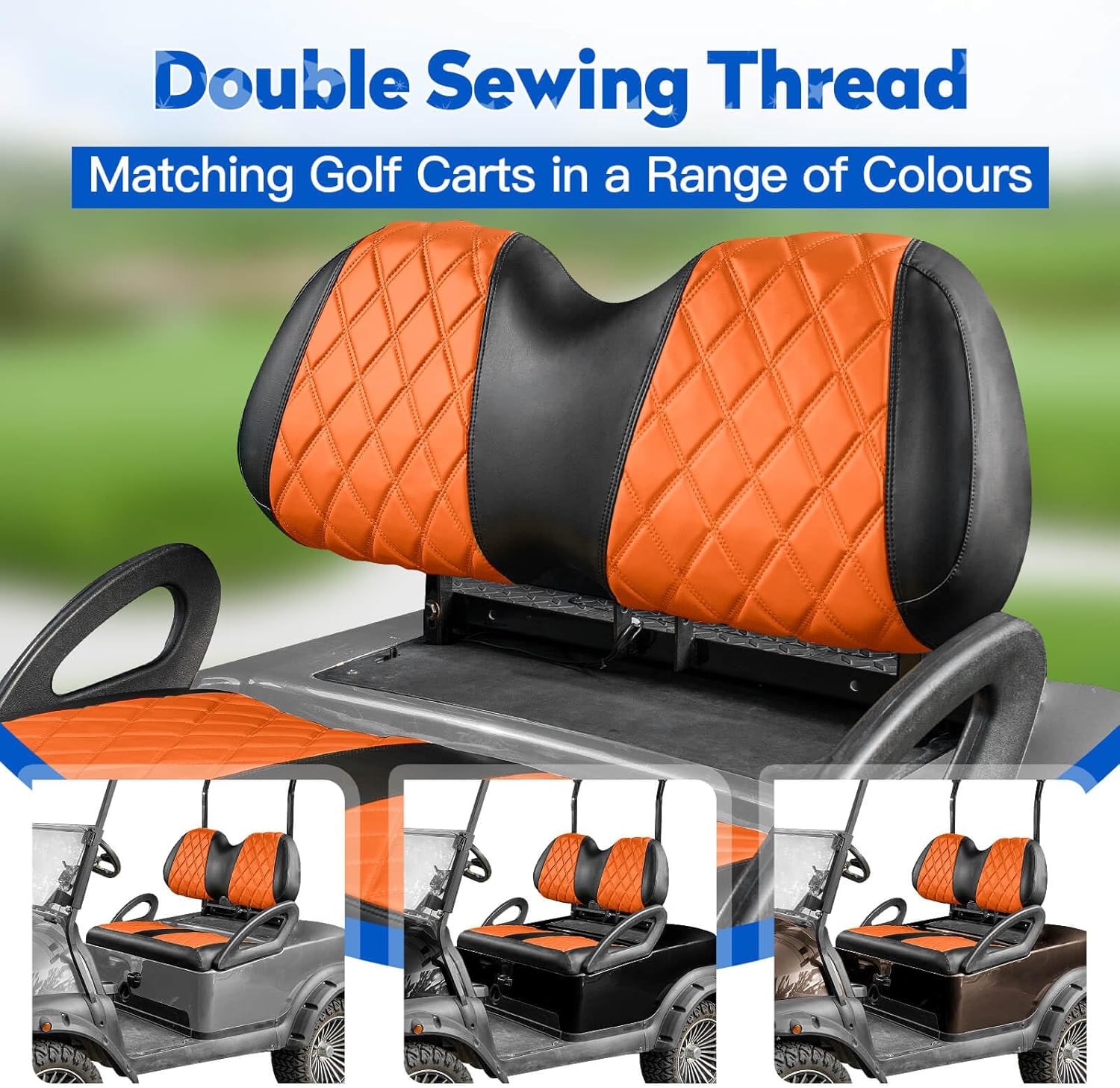 - 【Applicable Models】NOKINS Golf cart seat covers (Orange&Black) is only suitable for Club Car Precedent Golf Cart OEM Standard Front Seat Cushions. NOT SUITABLE FOR PREMIUM SEAT CUSHIONS. Size: Front Seat Cushion Cover about: 40 X 19.5 X 4.5 inches/Backrest Cover about: 39 X 15.2 X 4.3 inches. Please measure your seat size before buying.