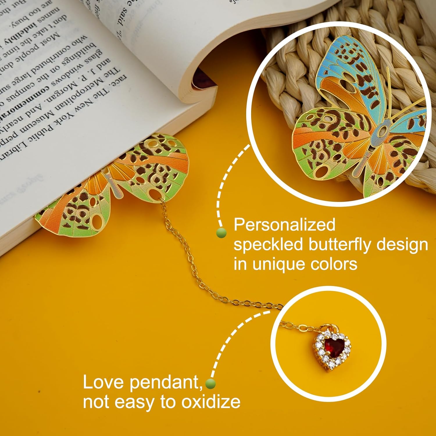 - 【Unique Design】 Metal bookmark combines the beauty of butterflies and flowers into one,with a chain love pendant, every detail reveals the uniqueness and intention,bookmarks for book lovers for book lover to love, an ideal gift with temperature