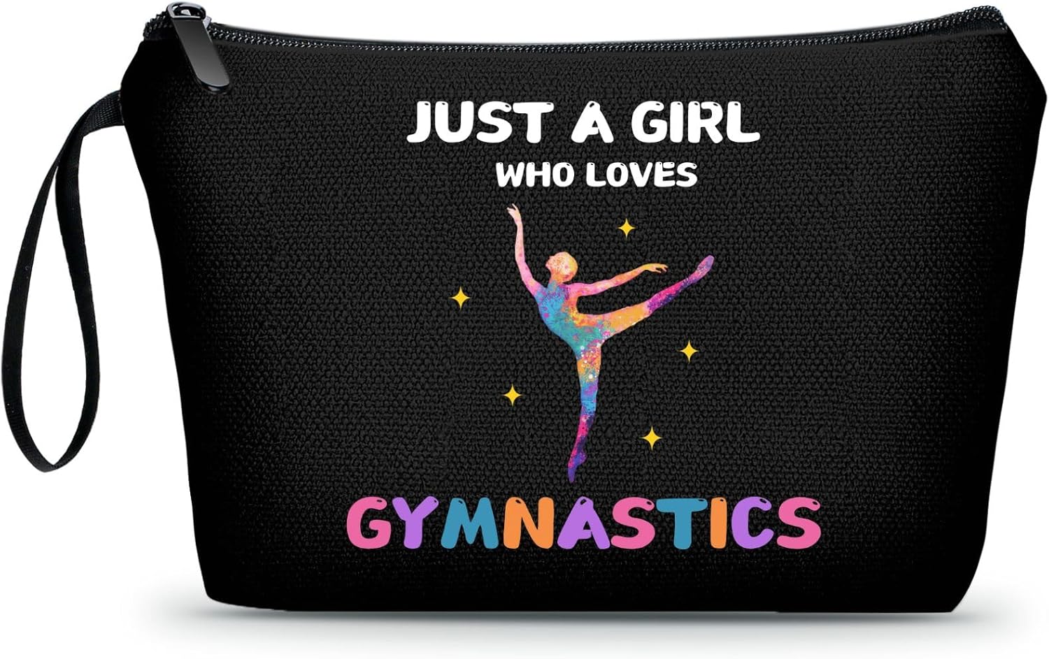 - Best Gifts Gymnastics Ideas: This is a beautiful makeup bag that can be given as a gift to friend or family.The travel makeup bag is printed on both sides with a meaningful blessing "just a girl who loves gymnastics" paired with a suitable pattern,which is a special and exquisite present