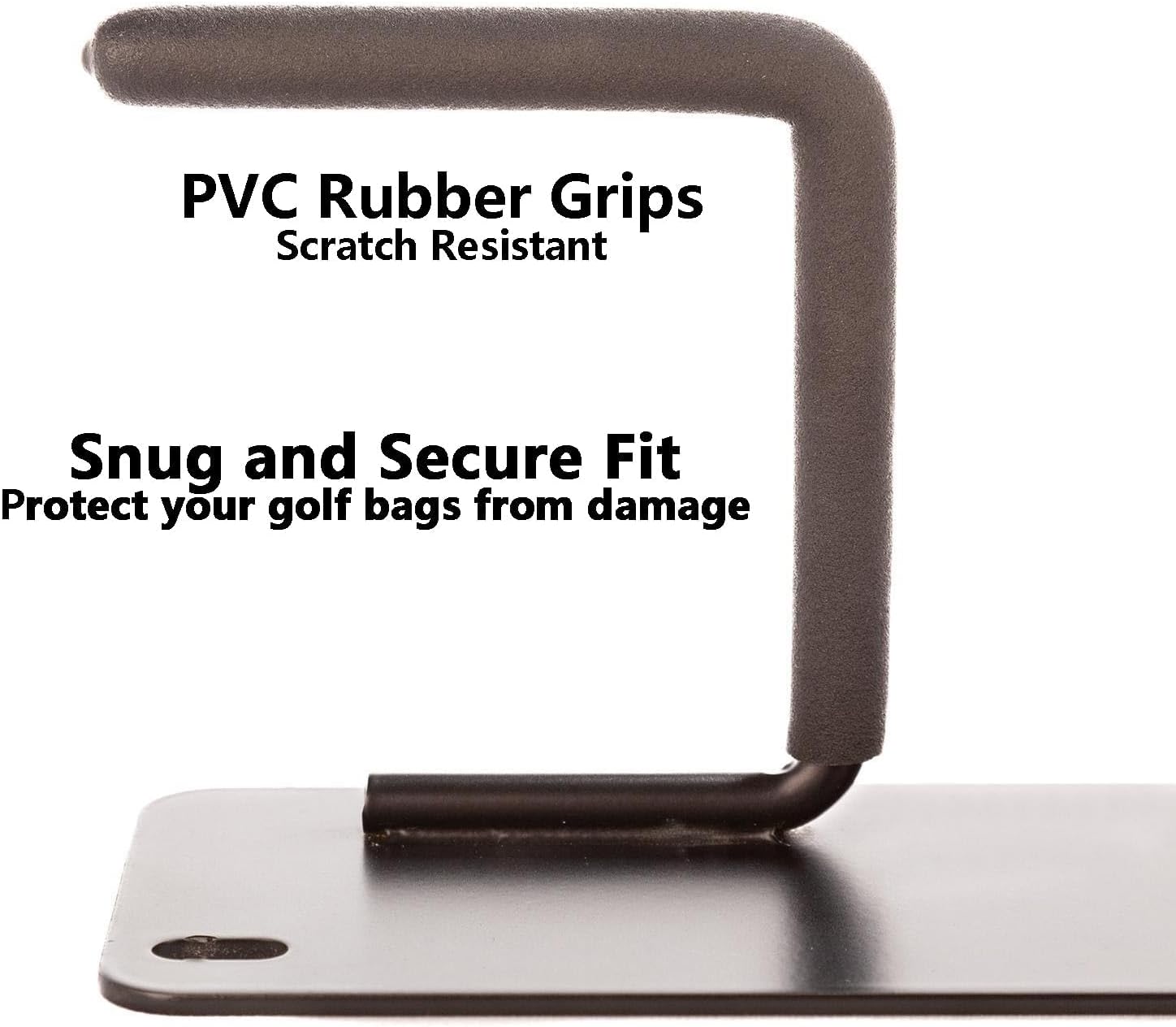 - Easy Access and Secure Hold: This golf club bags holder features scratch-resistant grips-PVC rubber hooks provide a snug and secure fit for your bags, protecting them from scratches while ensuring a tight, secure hold