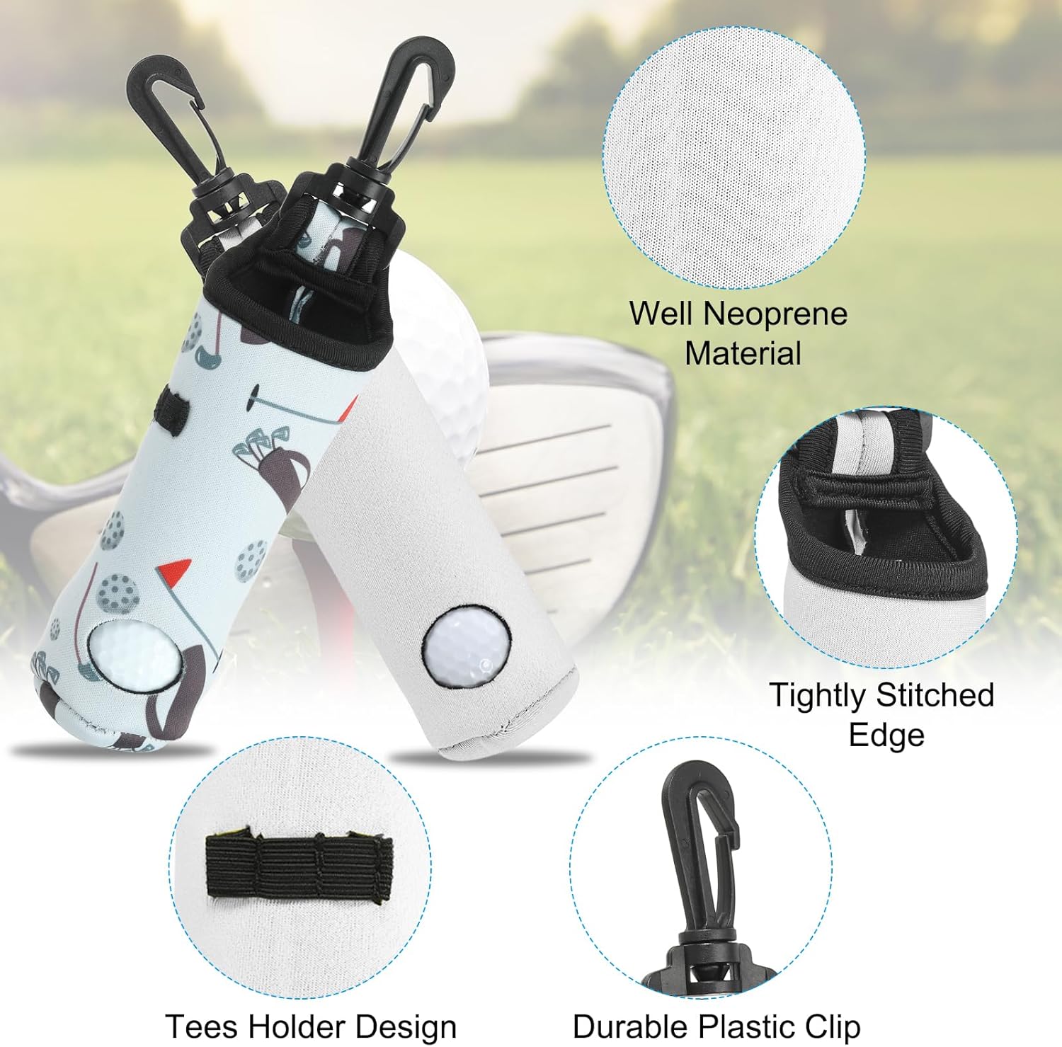 - Advantage:1. The golf tee holder is crafted from premium neoprene, which is safe, lightweight, and highly resistant to water and shocks. The golf ball bag features a one-piece molded design and has a luxurious, soft texture that enhances the overall feel. that is durable and resilient for long-term performance and longevity. 2. It can hold 3 golf balls and 3 tees securely. The golf bag is designed with two holes so the ball can exit the reservoir from the top, or squeeze out from the small hole