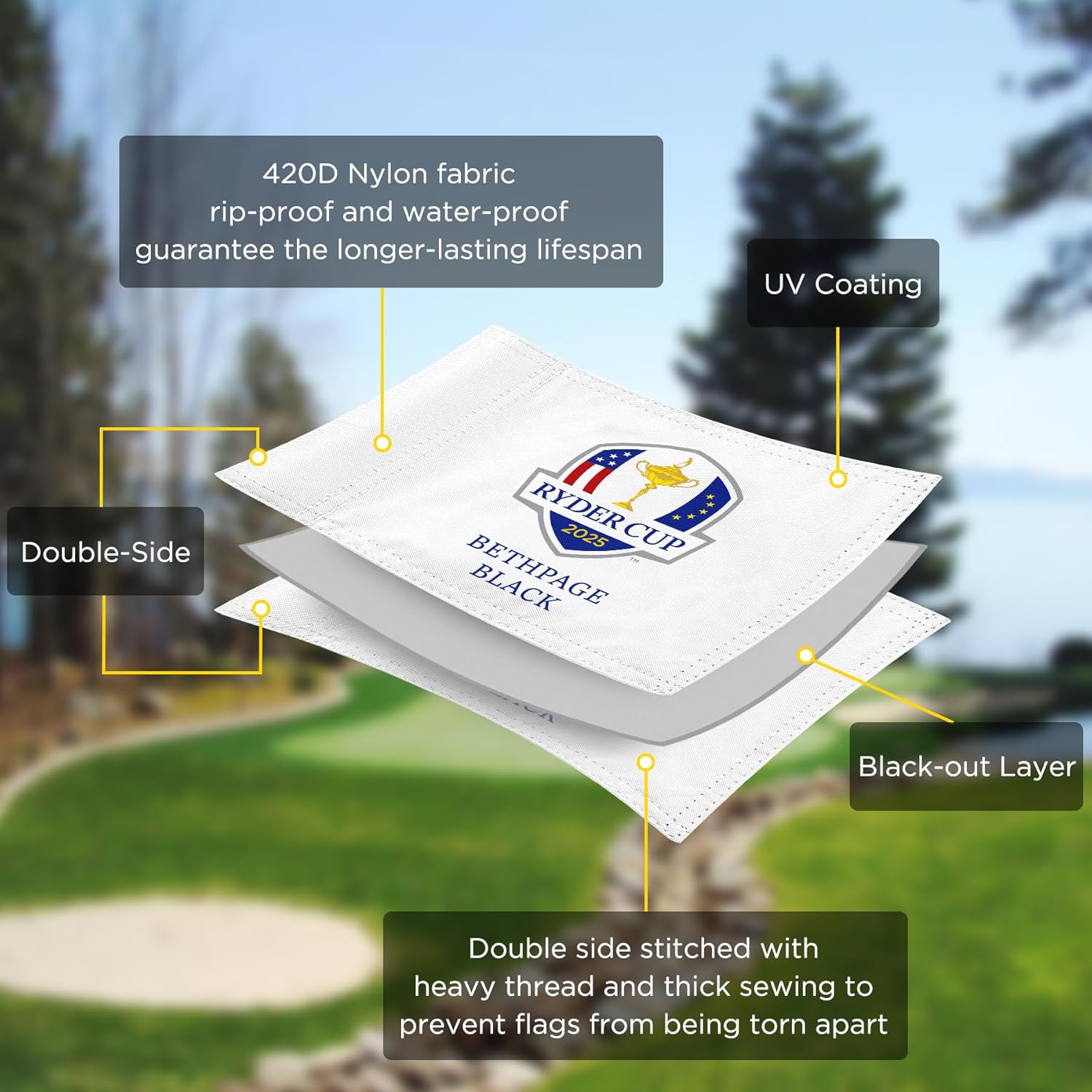 - Superior Craftsmanship: Each Golf flag features precision double-stitching for enhanced durability, preventing fraying edges for long-lasting use.
