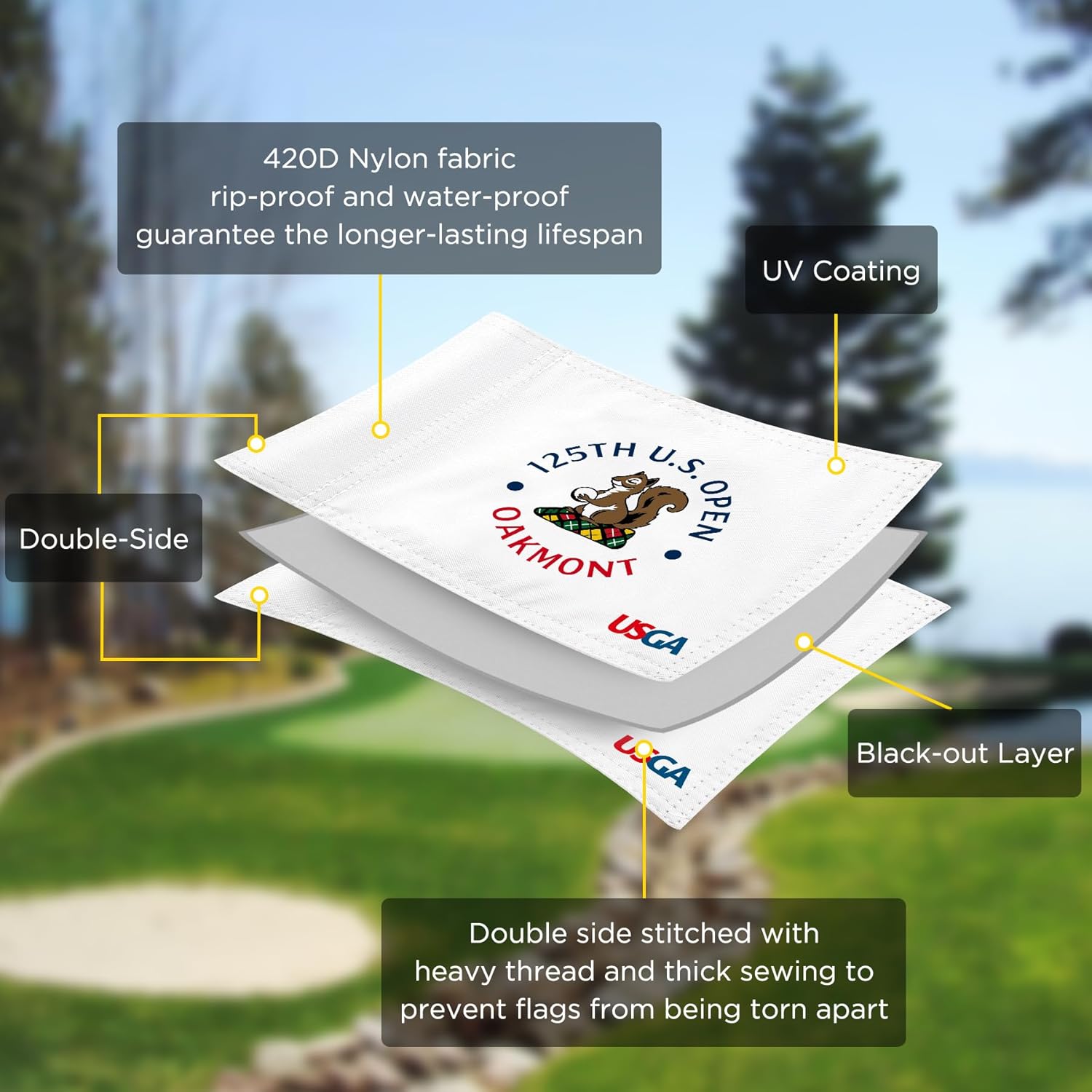 - Exclusive U.S.Tour Design: Stand out with the latest U.S.Open 2025 pattern, exquisitely silk-screened on both sides of the 6x8 inch practice putting green flag, making it a must-have for golf enthusiasts.