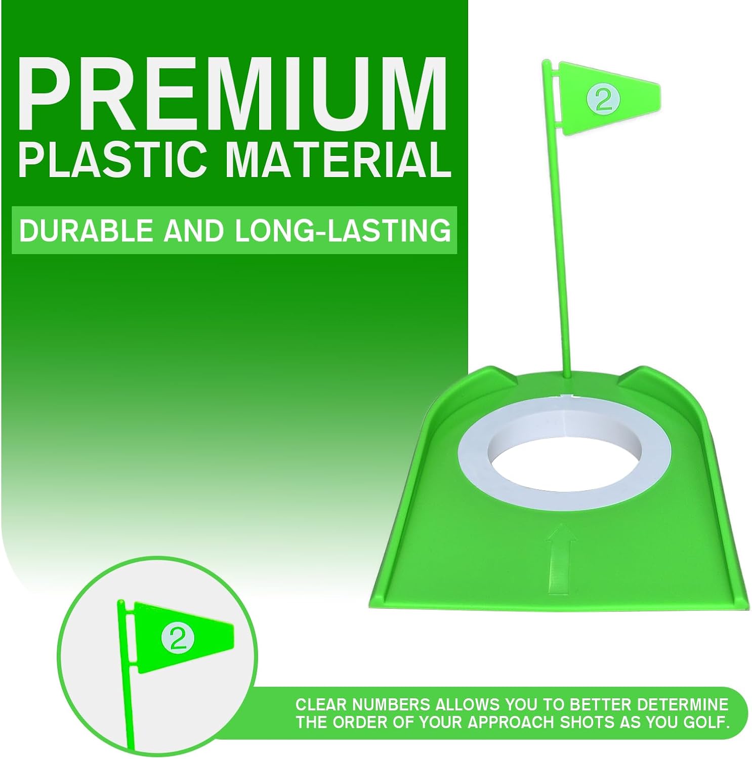 - ⛳ Golf Hole Cup: Transform your backyard, park, or living room into a fun mini-golf course with our portable golf hole cup. Perfect for family gatherings, parties, or solo practice, this lightweight and durable plastic golf cup brings endless entertainment to golfers of all ages. Removable flags with numbers are easy to store and move around, allowing you to better determine the order of your approach shots as you golf!
