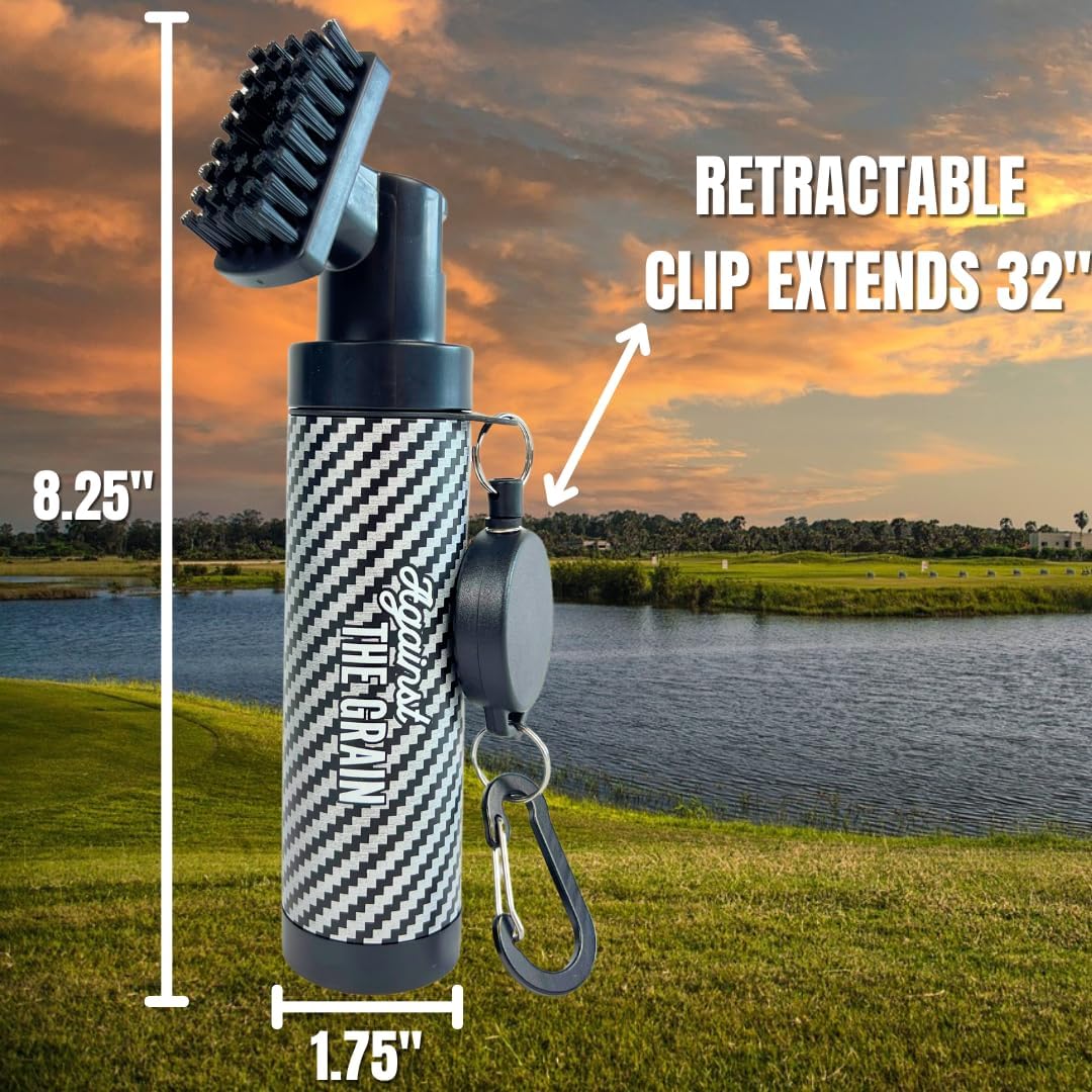 - WATER CLUB BRUSH FOR EASY CLEANING: The golf club water brush features a handy water reservoir, making it simple to spray and clean your clubs with ease. The durable nylon bristles effectively remove dirt and grime without damaging your equipment.