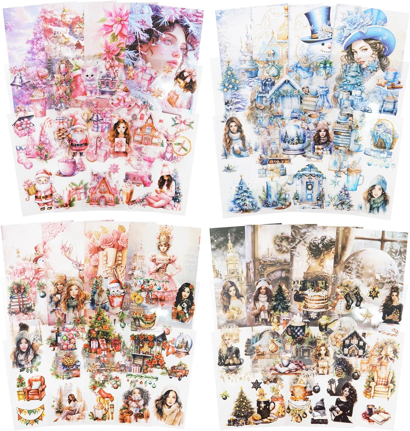 - Festive and Versatile Designs: This 4-pack sticker book set includes 80 sheets of pre-cut stickers with beautifully detailed Christmas-themed designs. Ideal for scrapbooking, journaling, planners, DIY crafts, and adding a festive touch to holiday gift wrapping