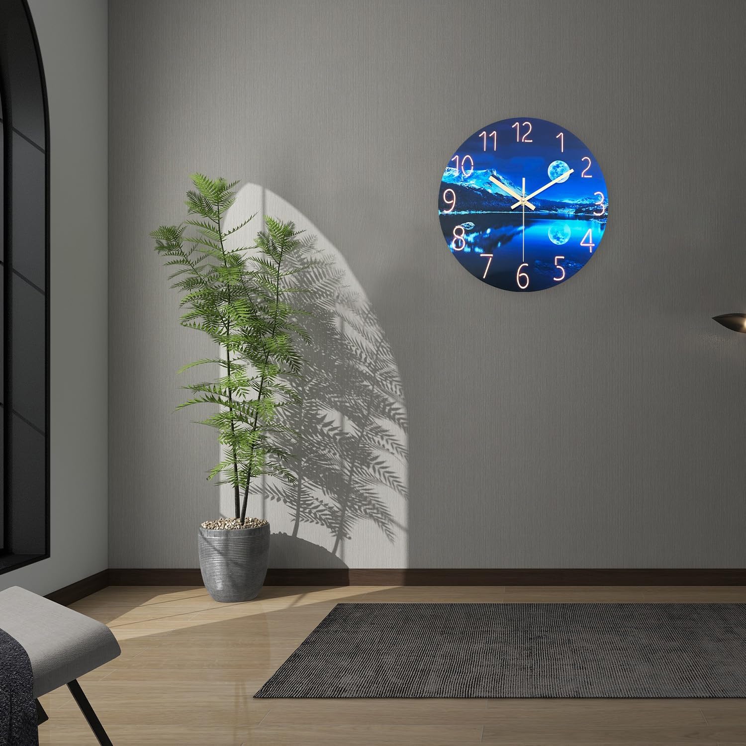 Large Wall Clocks for Living Room Decor Glass 20 Inch Analog Wall Clocks Battery Operated Blue Moon Silent Wall Clock Non Ticking