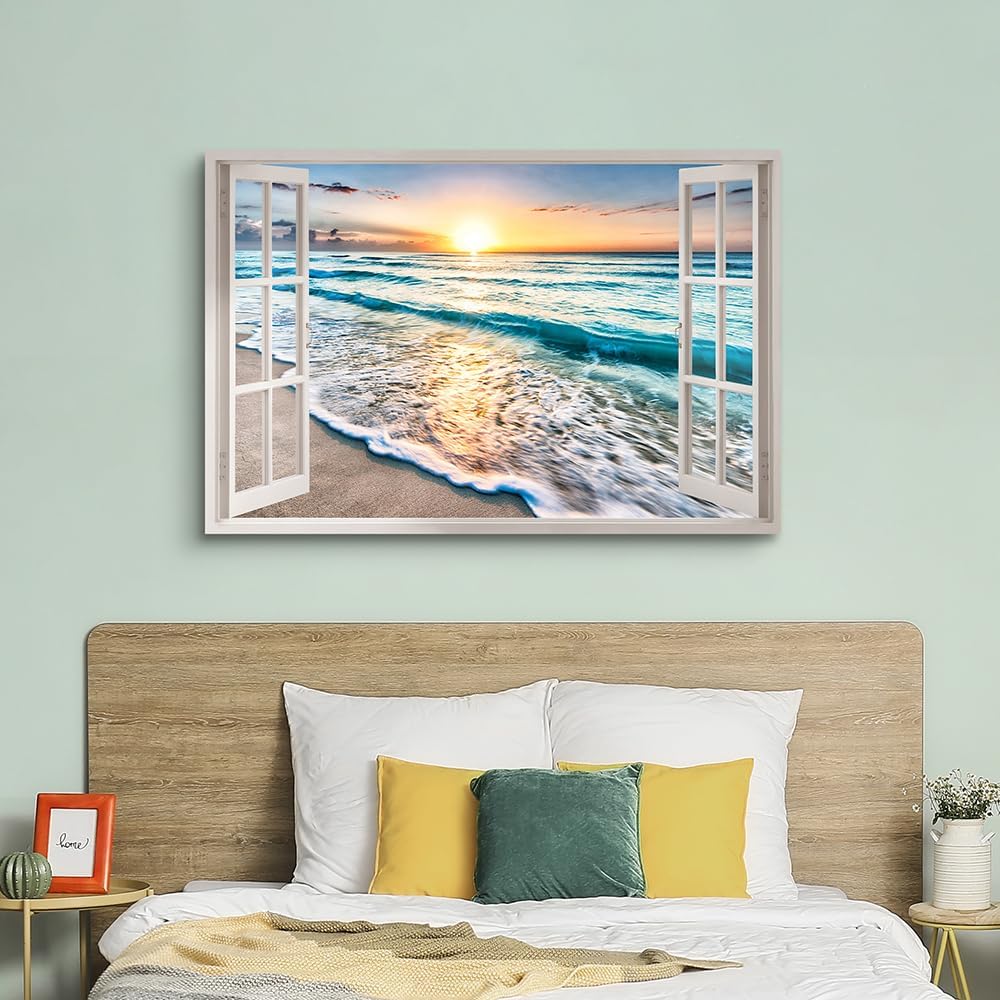 - Coastal Wall Decor Artwork : Beach window picture is printed on premium quality canvas in high quality fade resistant ink, gallery wrapped over wooden bars