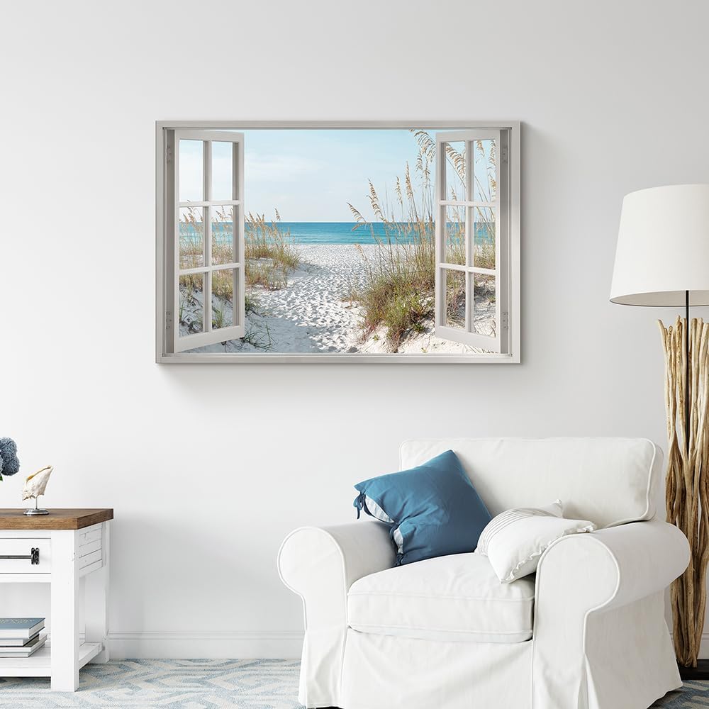 - Coastal Wall Decor Artwork : Beach window picture is printed on premium quality canvas in high quality fade resistant ink, gallery wrapped over wooden bars