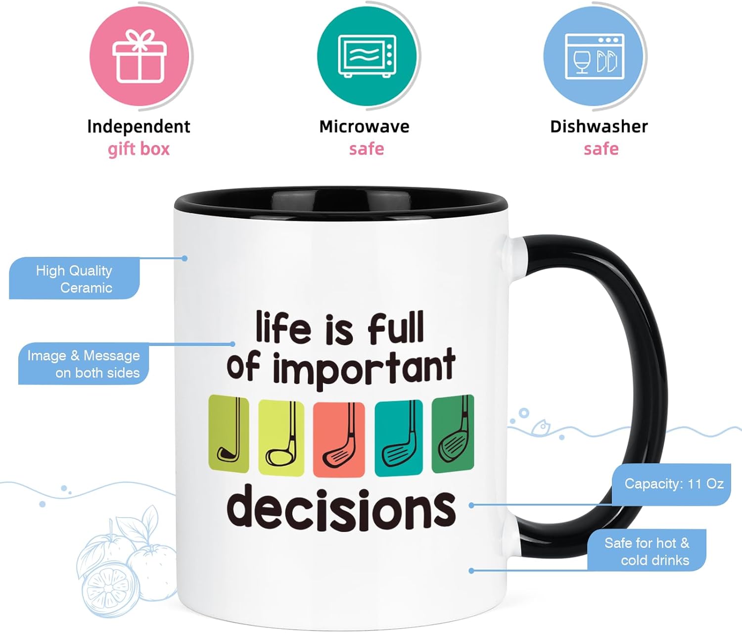 - CELEBRATION OF PASSION: The 'Life is Full of Important Decisions' golf coffee mug serves as the perfect tribute to those who carry a deep love for the sport of golf. The golf gifts for men are certain to bring a smile to any golfer, blending their love for the game with their daily coffee ritual.