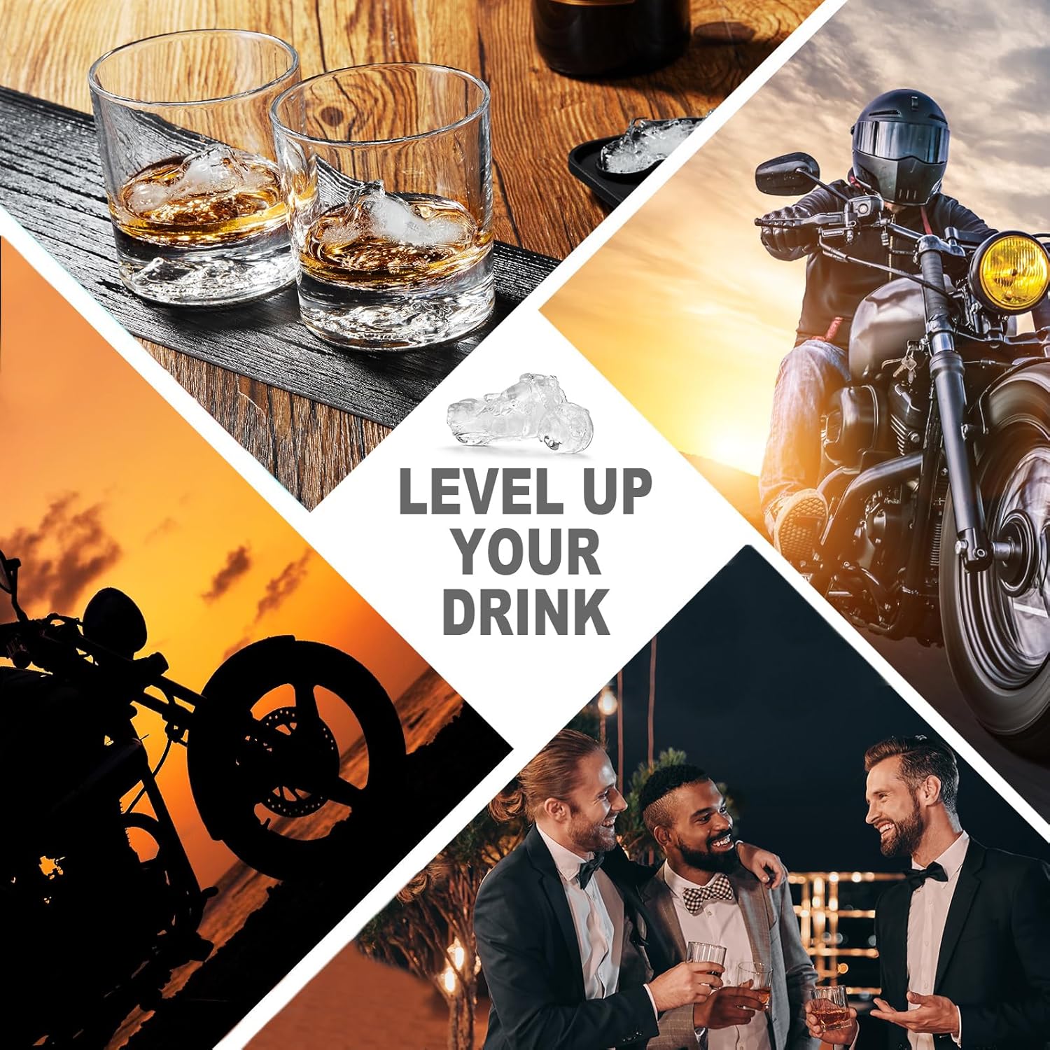 - Chilled Your Drinks For Fun & Conversation Starters - Motorcycle shapes ice floating on your drinks, it will add a fun treat for any motorcycle lover. It's conversation starters and a fun way to express your personality.