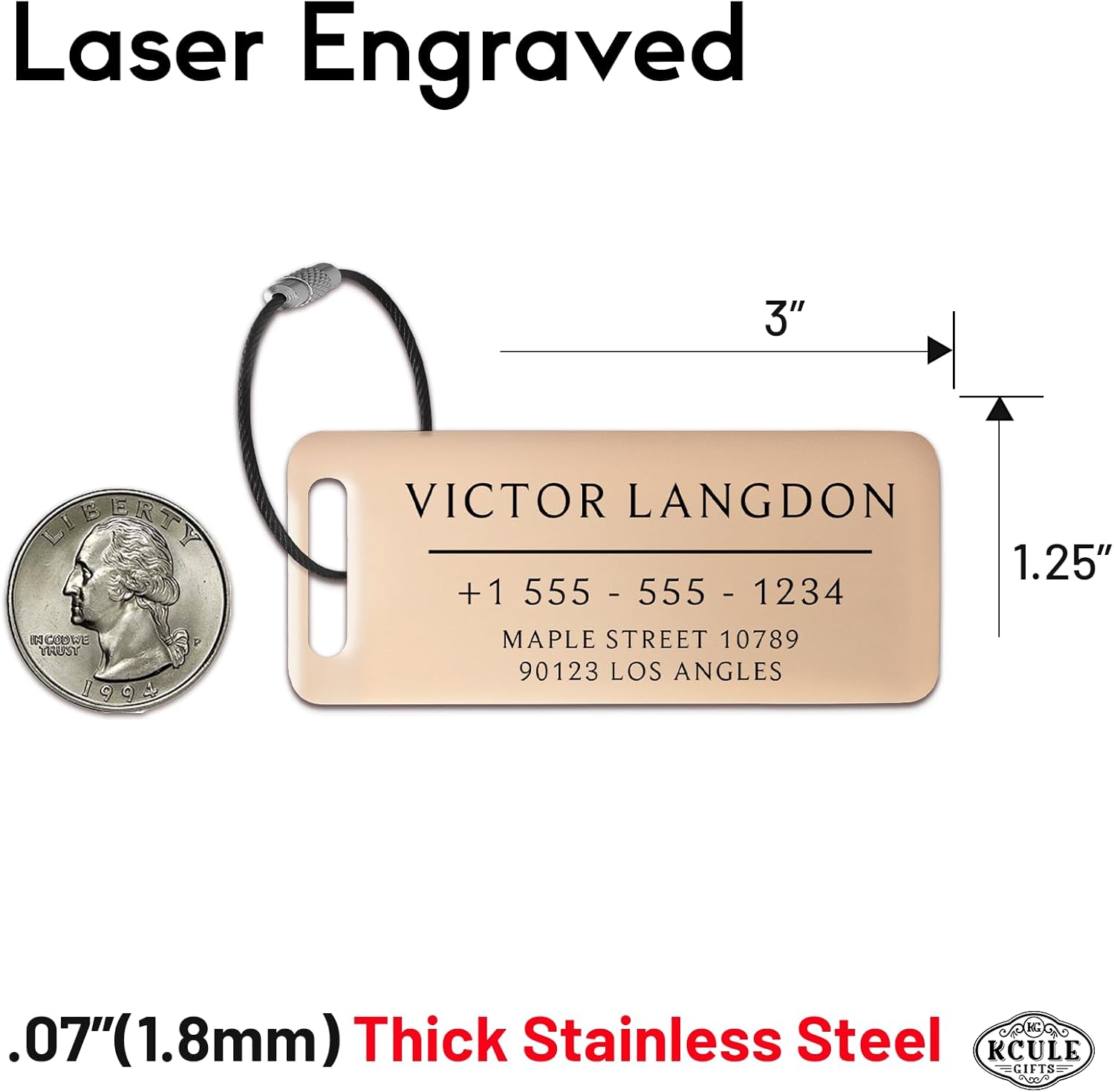 Personalized Luggage Tags for Suitcases - Stainless Steel Custom Luggage Tags for Backpacks & Bags, Sturdy, Waterproof & Heavy Duty (Rose Gold or Silver / 3" x 1.25")