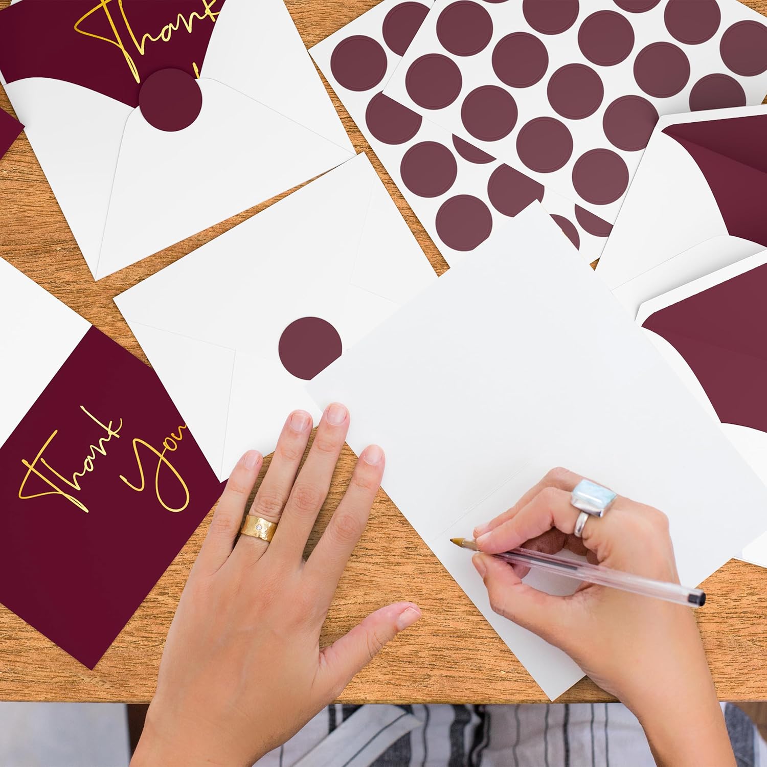 - SIMPLE & ELEGANT SEALING – Each pack of thank you cards comes with envelopes lined with a matching wine interior, and a moisture-seal adhesive, plus a stylish peel-and-seal sticker for a secure and polished finish. Perfect for personal, professional use, and small businesses.