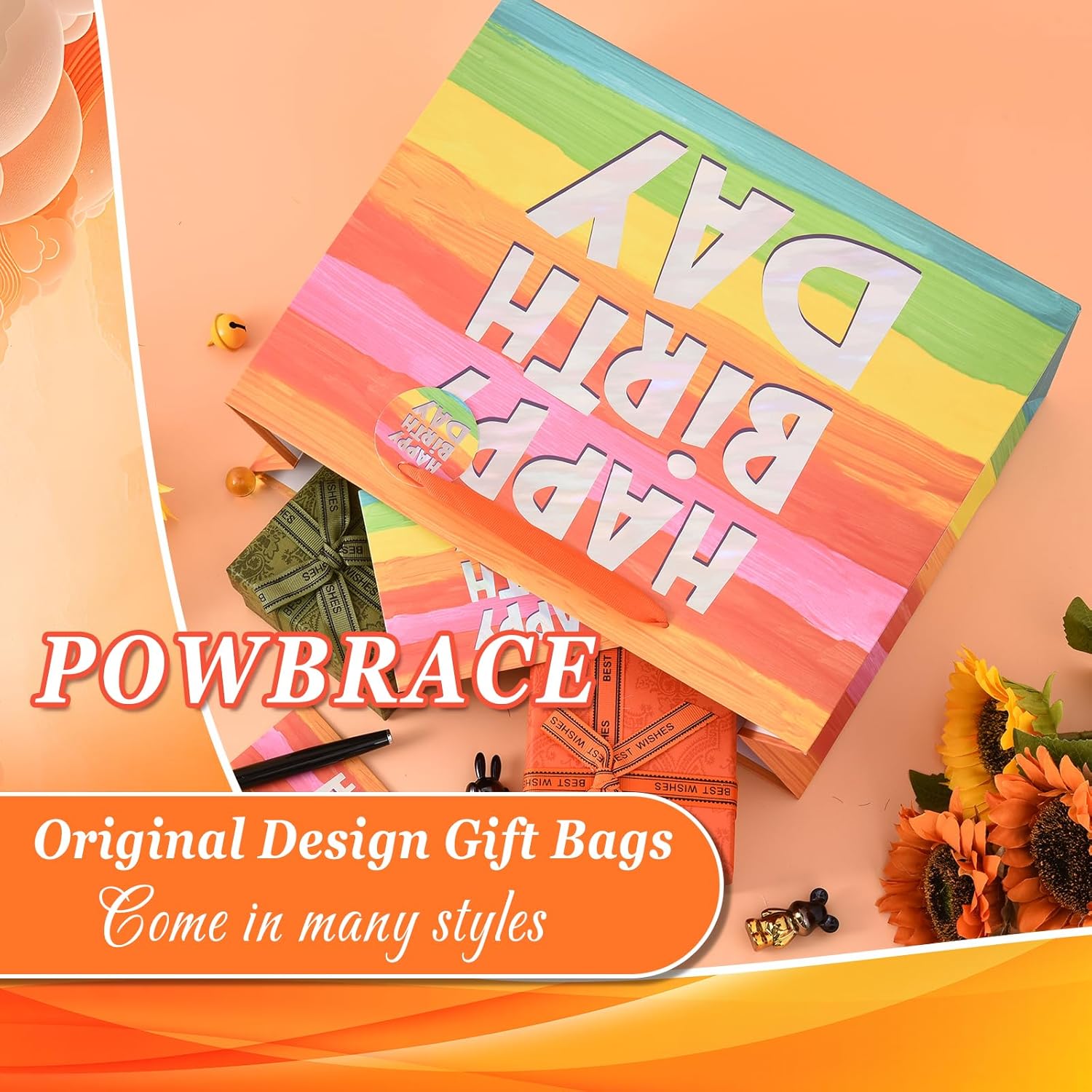 - ăBirthday Medium Gift BagăThe bag pattern is novel, beautiful and unique. The colorful striped background design creates a rainbow effect, and the bag is also printed with the words âHappy Birthdayâ, perfect for birthday parties. Whether it is for yourself, family, friends or coworkers, it is a good choice.
