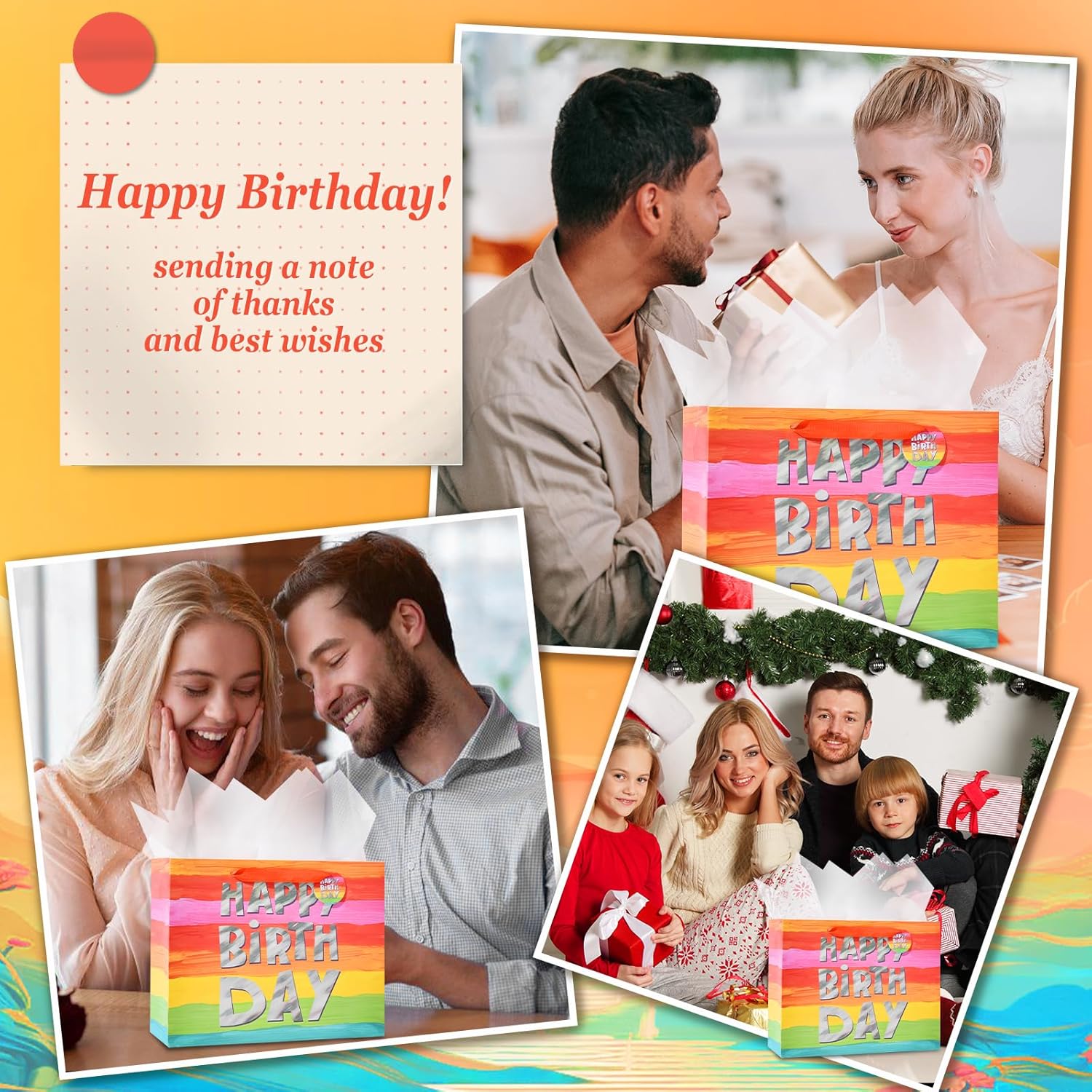 13" Colorful Happy Birthday Gift Bags with with Tissue Paper and Greeting Card for Party,Happy Birthday Gift Bag for Kids, Boys, Girls, Baby Boy,Men Women,Gift Bags Medium size (1 PCS Colorful)