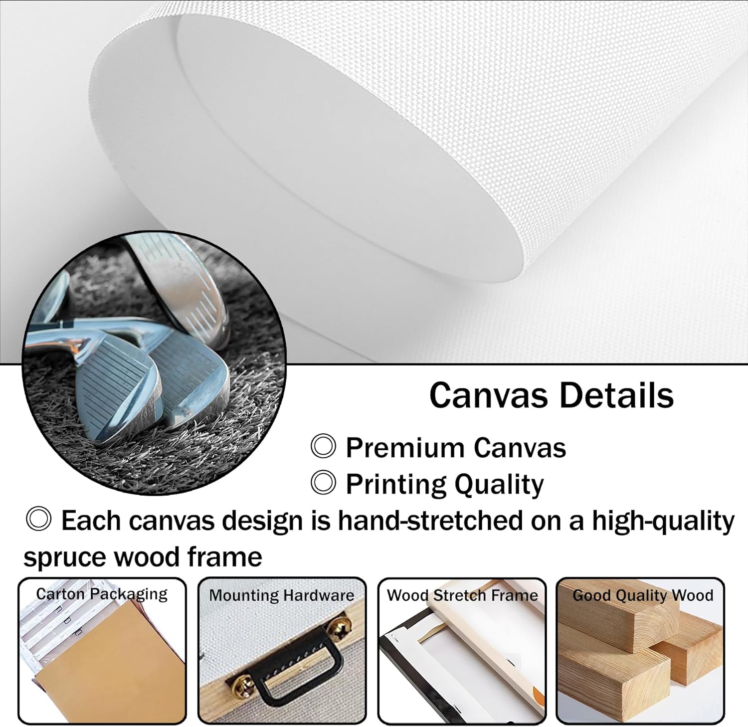 Sepwrol Golf Canvas Wall Art Black White Golf Ball and Golf Club Picture Sport Theme Poster Printing Artwork for Home Living Room Bedroom Office Wall Decor 12"x16"x3