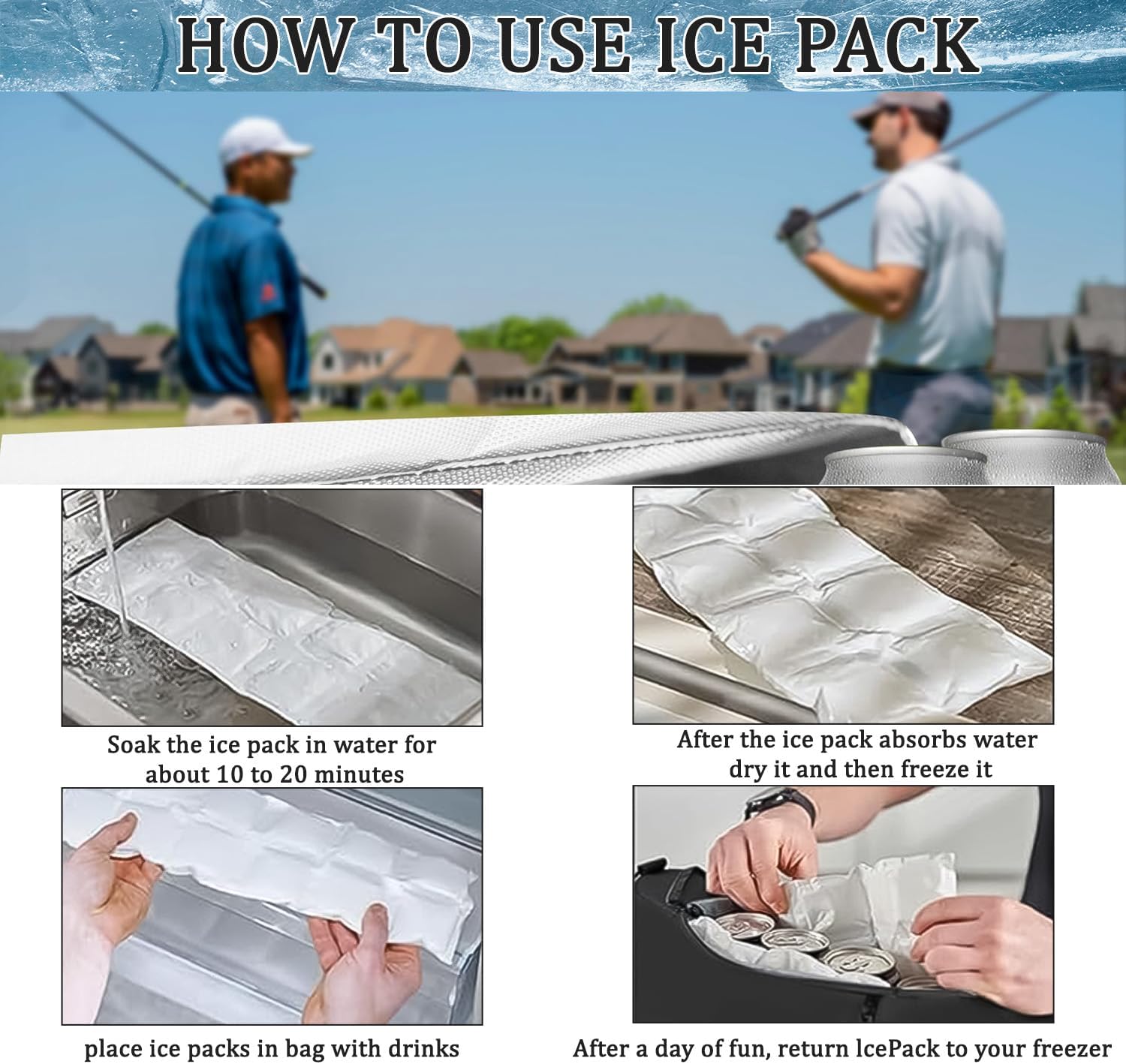 - ăKeeps Drinks ColdăThis Golf Cooler has high quality insulation and ice pack keep drinks refreshingly cool for 6-8 hours. Perfect on a hot day. Please soak the ice packs in water and freeze it before use.