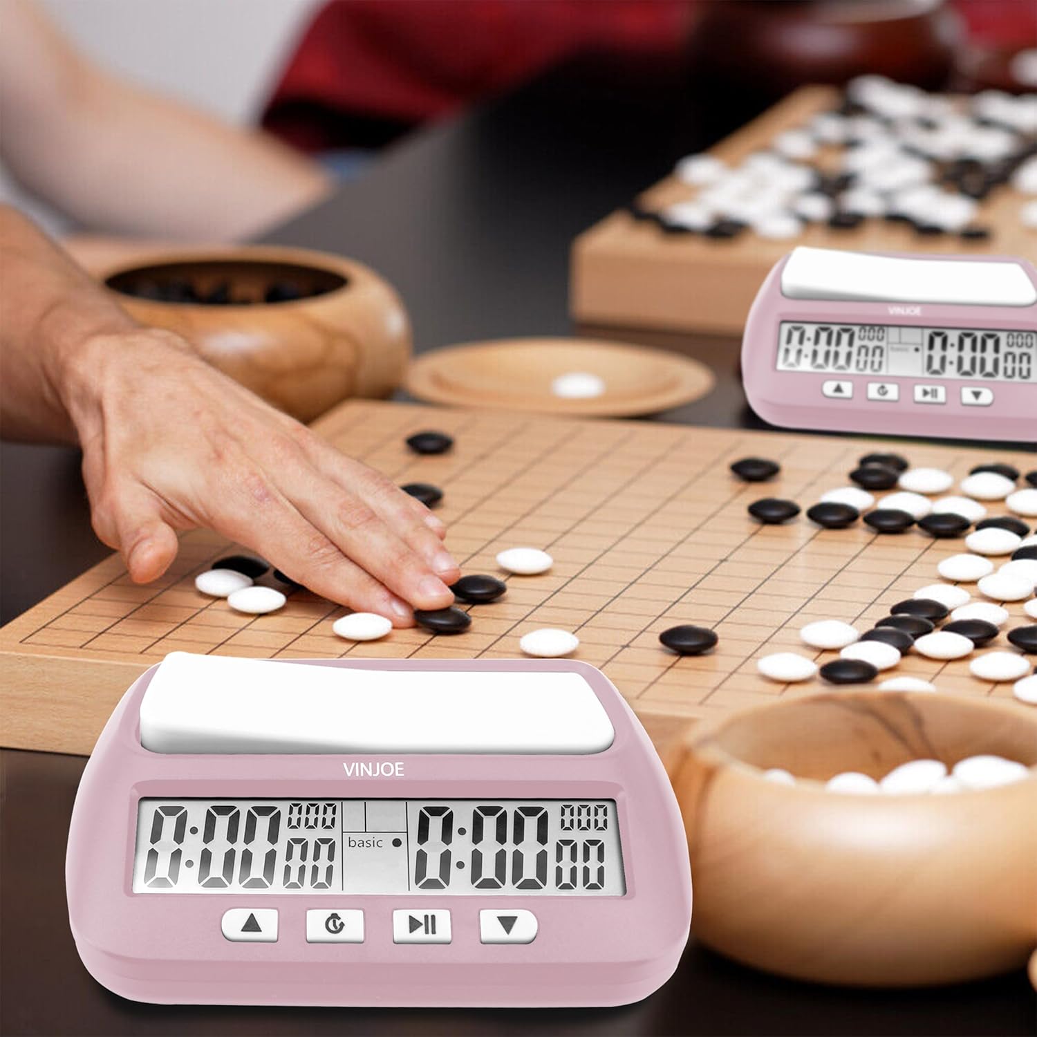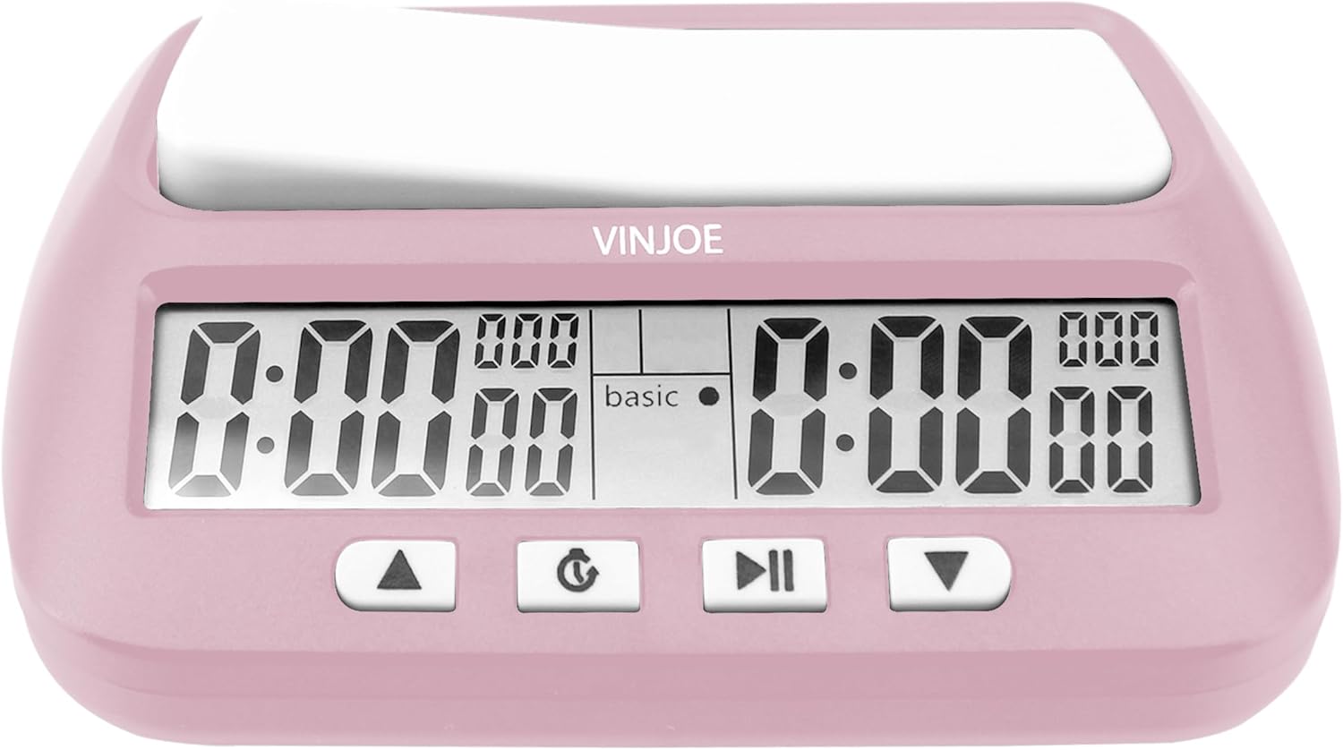 VINJOE Chess Clock Digital Chess Timer Professional for Board Games,Portable Digital Chess Clock & Game Timer with Basic,Bonus,Delay and Positive Time Features Best Gifts for Christmas (Pink)