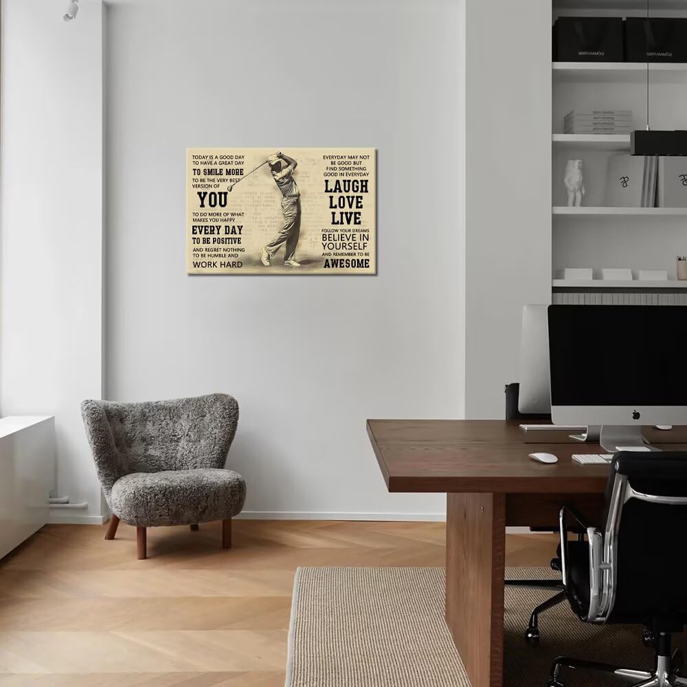 Vintage Golf Poster Inspirational Quotes Wall Decor Today is a Good Day Motivational Pictures Canvas Print Golf Artwork Painting for Boys Room Home Decorations Framed Ready to Hang (18 x 24 inch)
