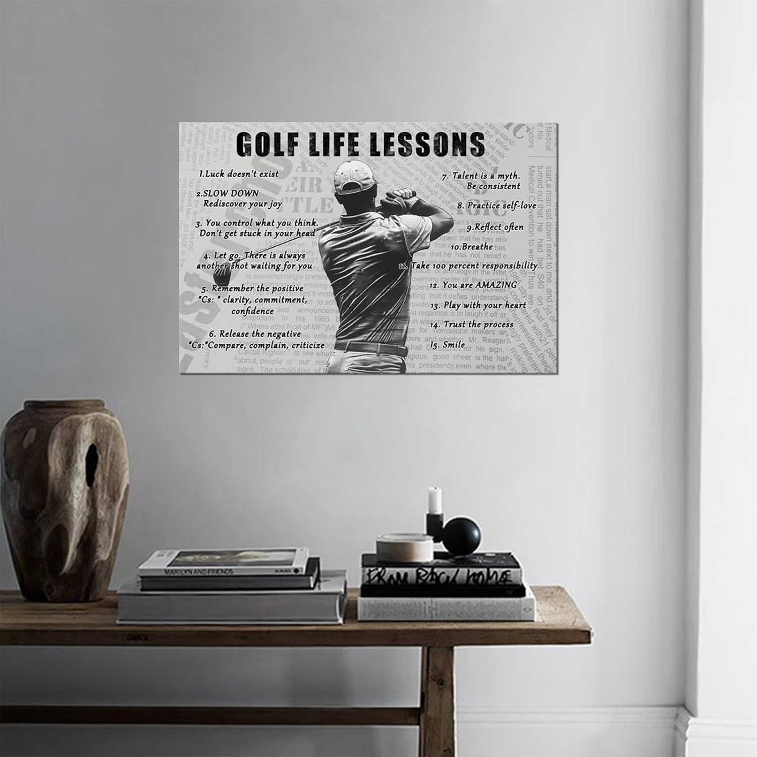 Golf Sports Wall Art Golf Life Lessons Wall Decor Golf Sign Retro Poster Boy Men Room Motivational Decorations Canvas Print Painting Artwork for Living Room Home Decorations Framed (24 x 36 inch)