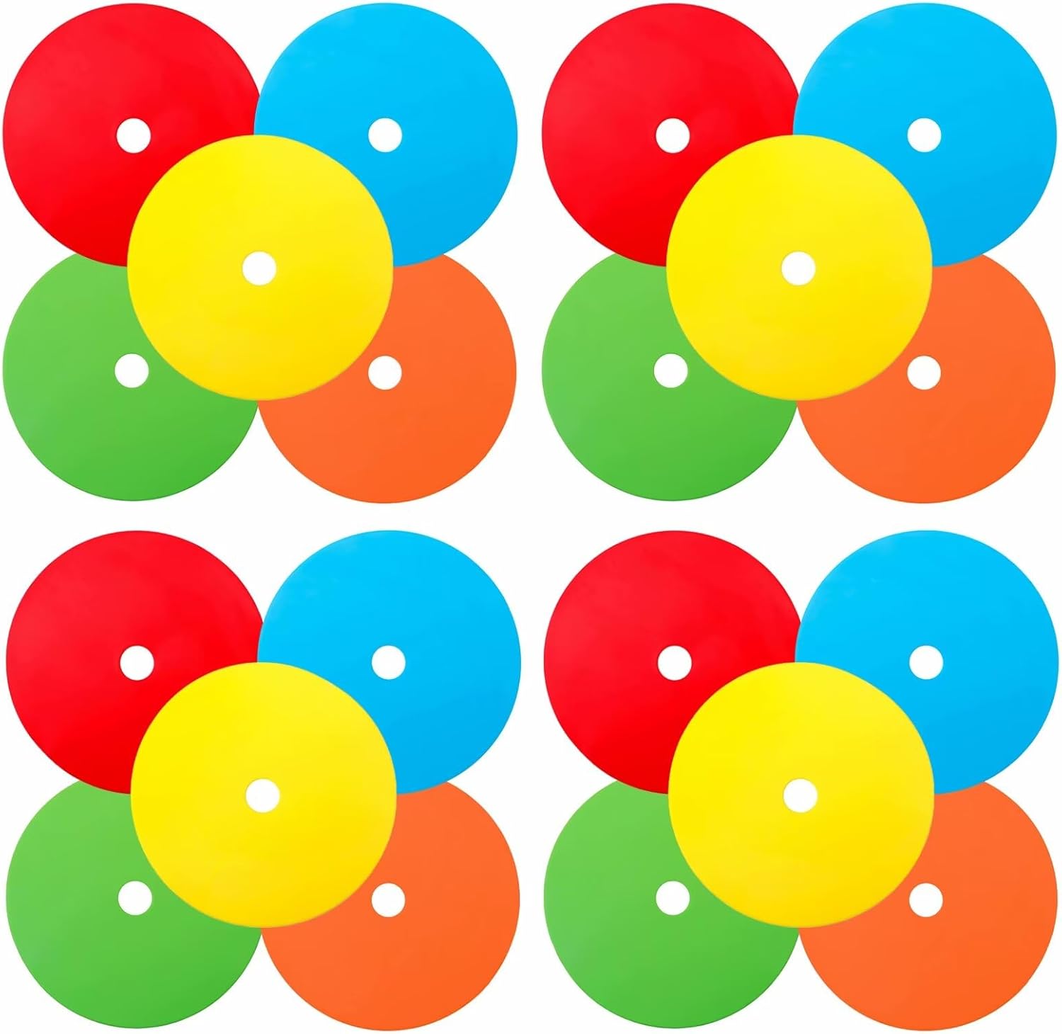 - BRIGHT, VIBRANT COLORS:Designed for optimal visibility comes with 5 kinds of bright colors,can let you find the target in gym class or for agility dots training when practicing football,hockey, basketball,soccer,dance etc.Which is a great alternative to traditional cone markers.