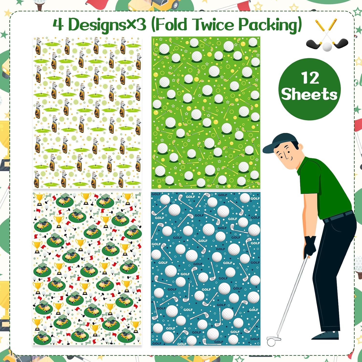 - SIZE OF WRAPPING PAPER:Each golf gift wrap sheet measures 20 x 28 inches/50 x 70 cm.With 4 designs,3 sheets per design,12 sheets in total.The generous dimensions ensure you have enough paper to beautifully cover your presents without excessive waste.