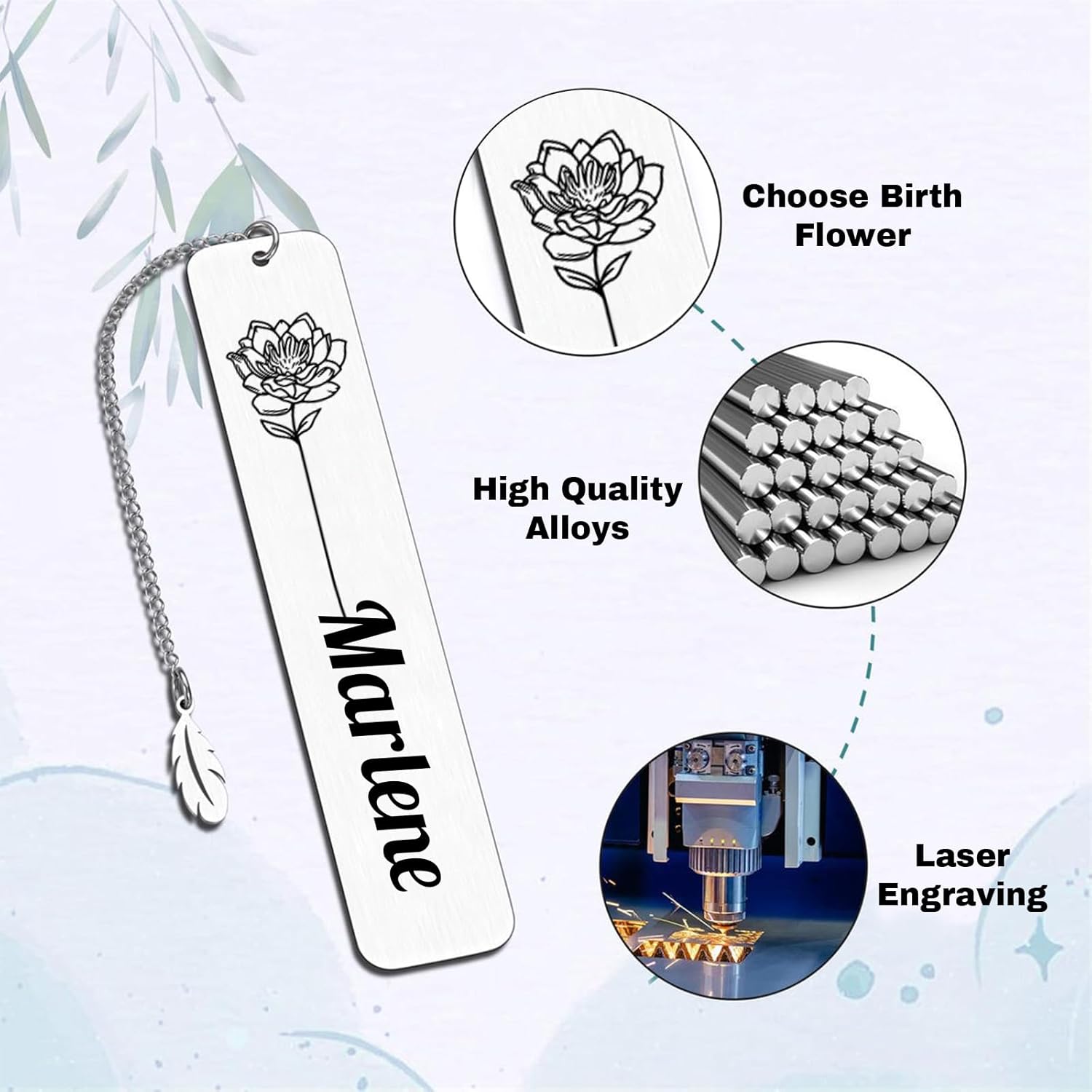 Personalized Birth Flower Bookmarks for Women Book Lover Birthday Custom Bookmarks Customized Gifts for Her Valentine's Day Graduation Gift for Female Girl Sister Girlfriend Christmas Wedding Gift