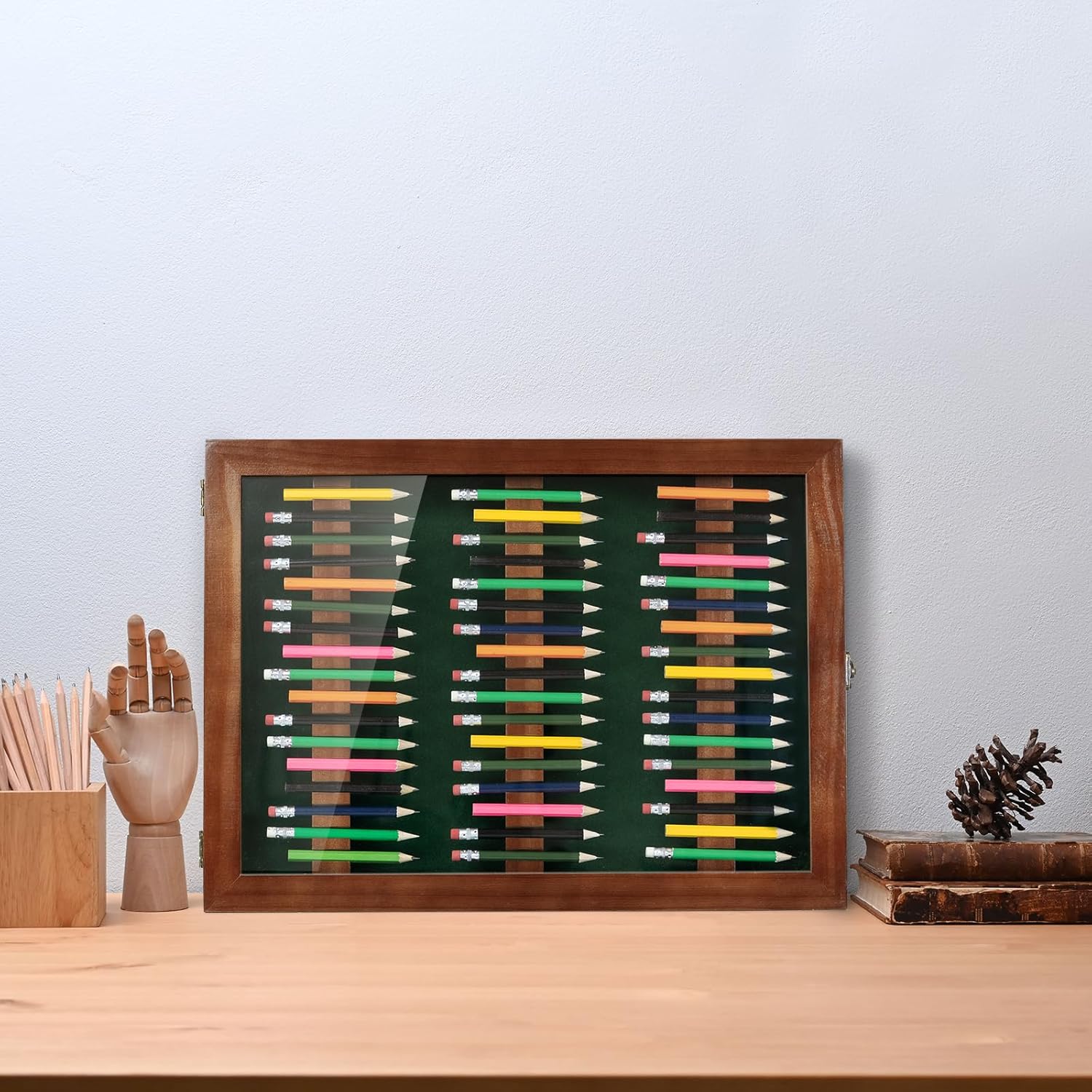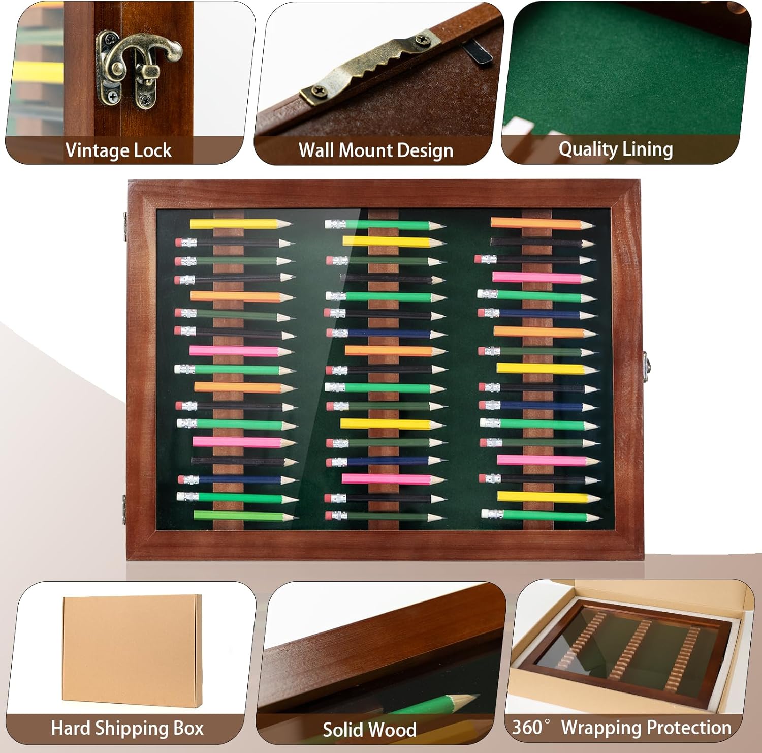 Golf Pencil Display Case Holds 51 Round or Octagonal Golf Pencils Wood Wall Mount Clear Display Case with Acrylic Dust UV Cover