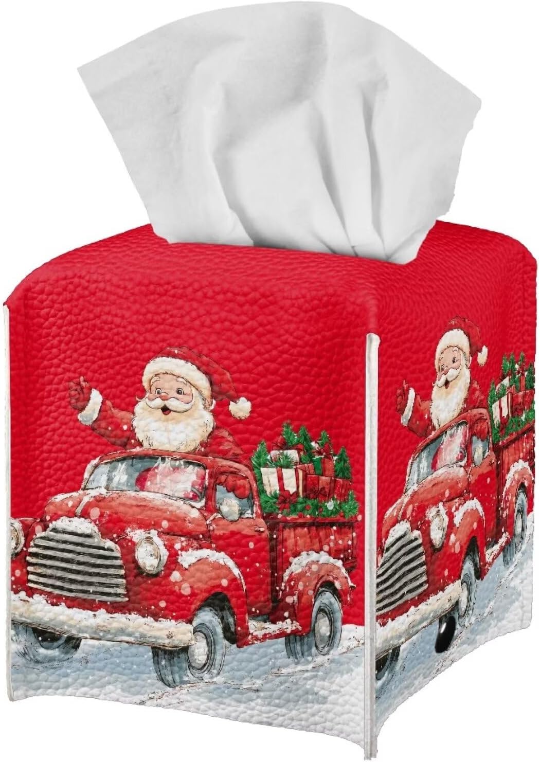 Christmas Tissue Box Cover Red Truck Tissue Box Holder Square Xmas Holiday Cute Tissue Box Modern Home Decor for Car Office Table Desk Kids Room