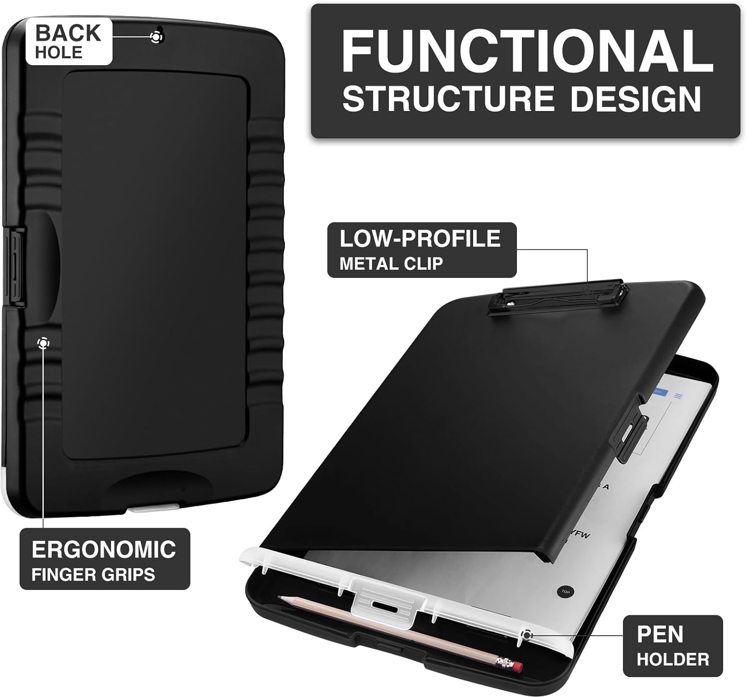- High Capacity: Equipped with both a paper storage component that holds twice as much paper as other clipboards and a built-in pencil case. The high-capacity medical clipboard can securely hold up more than 200 letter-sized documents and legal pads, and up to 6 pencils.