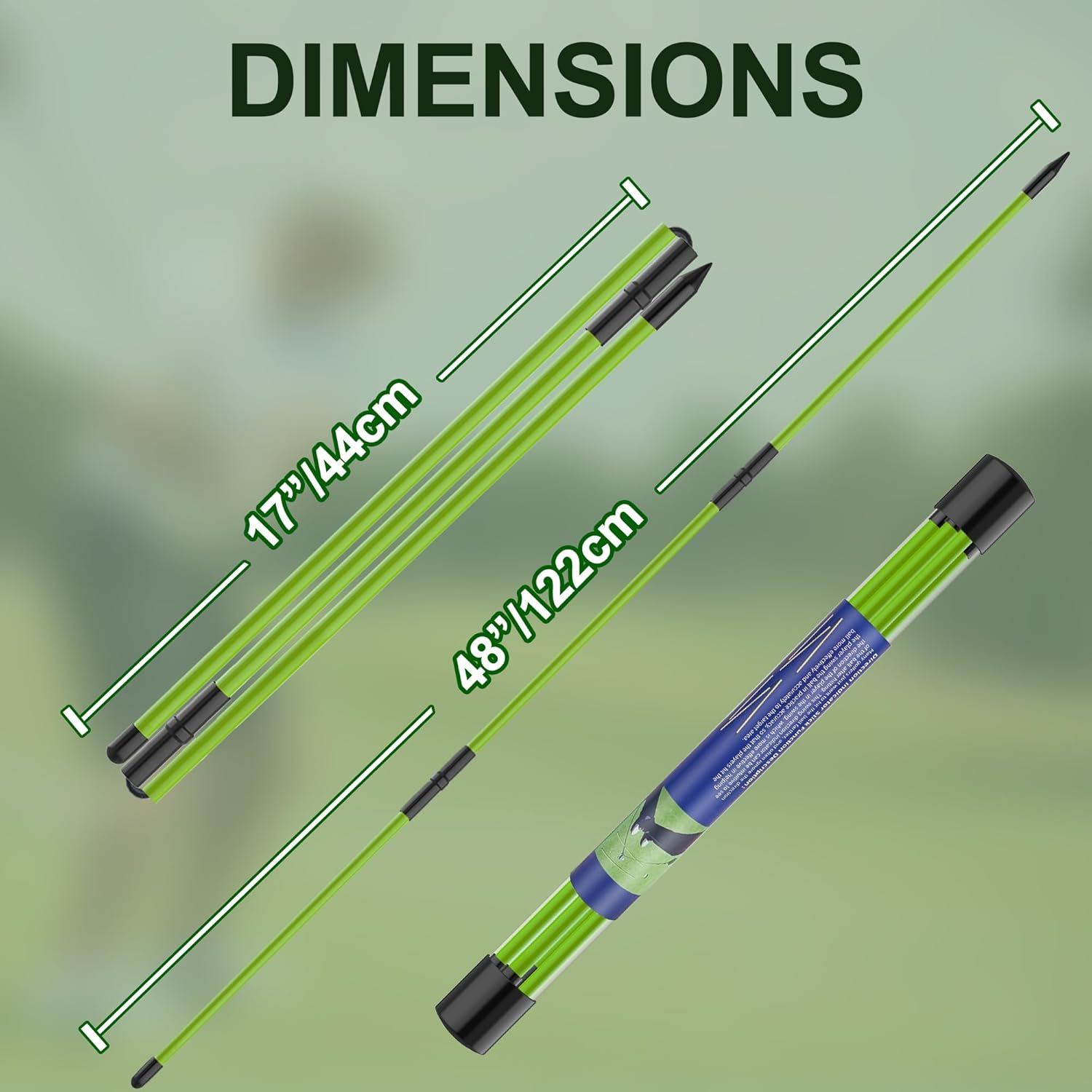 - Foldable Design : The foldable alignment sticks can be folded into 3 sections, which can be stored in the equipped storage tube.Fully Unfolded size: 48 inches/122cm, Folded Size: 17 inches/43.5cm. Fits easily into a golf bag, very convenient to carry and save space.
