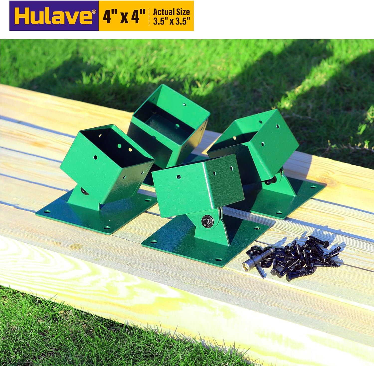 Hulave 201 Stainless Steel Swing Set Anchor Leveling Kit, Swing Set Leveling Base Bracket, Fits 4 x 4 (Actual Size 3.5" x 3.5") Wood Legs, Avoids Moisture to Protect Wooden Legs (4pack - Green)