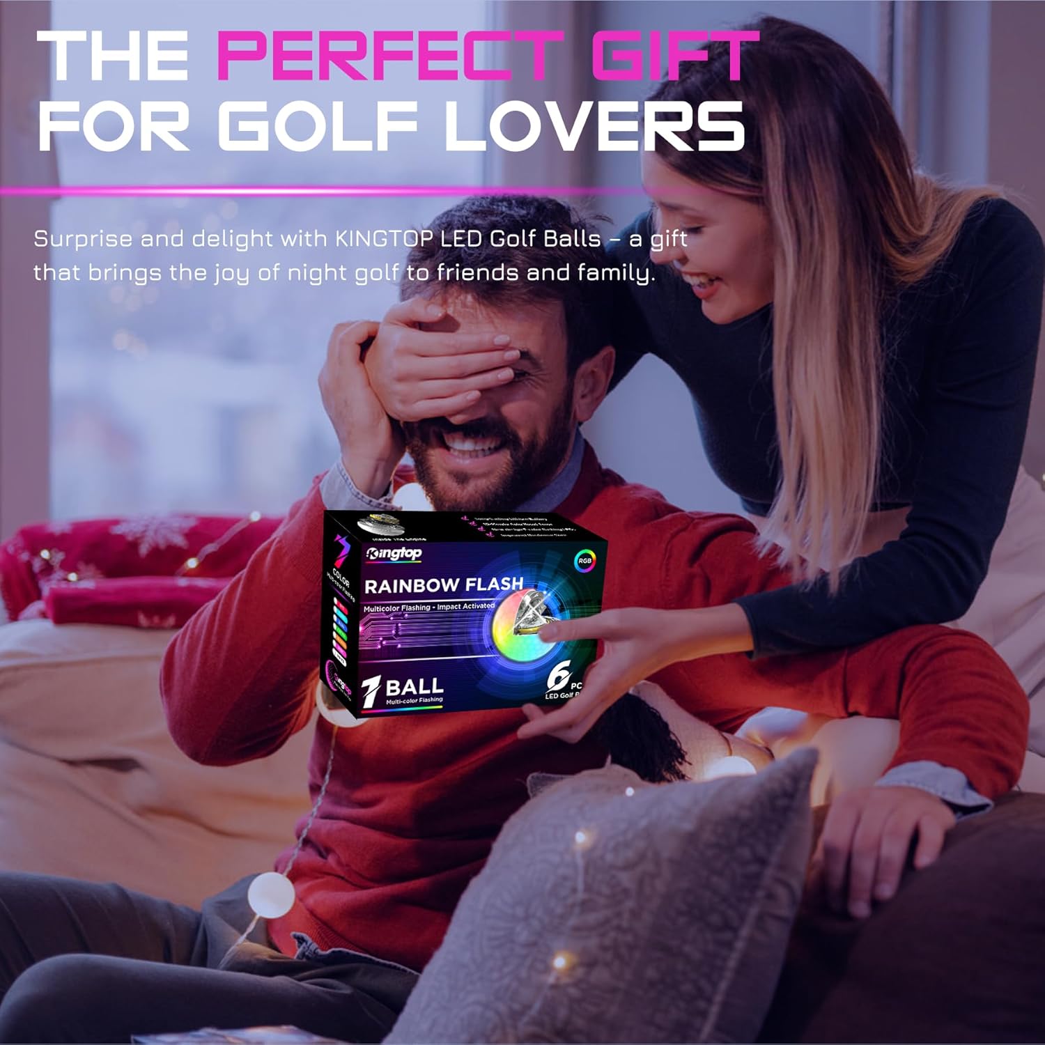 - 7-Color Flashing Modes: Each KINGTOP Rainbow Flash LED golf ball cycles through 7 vibrant colors, creating a stunning, fun visual effect as it flies through the night sky.