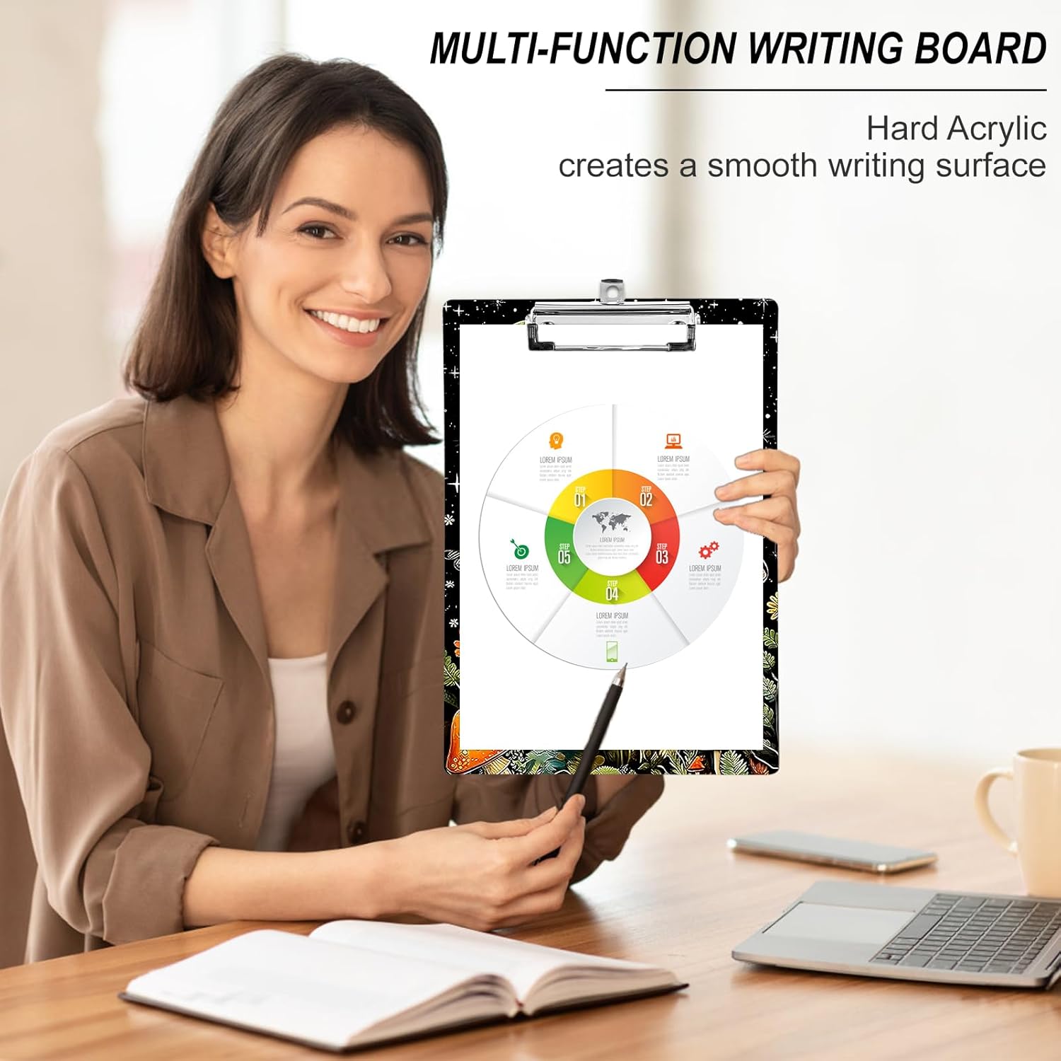 - 【Unique Patterns】Each clipboard is clear printing with brilliant color, fashion cute style, classic and chic elements, make this colorful clipboard more attractive. With this cute clip board, you will feel attrative and get more fun during your one-day long work.