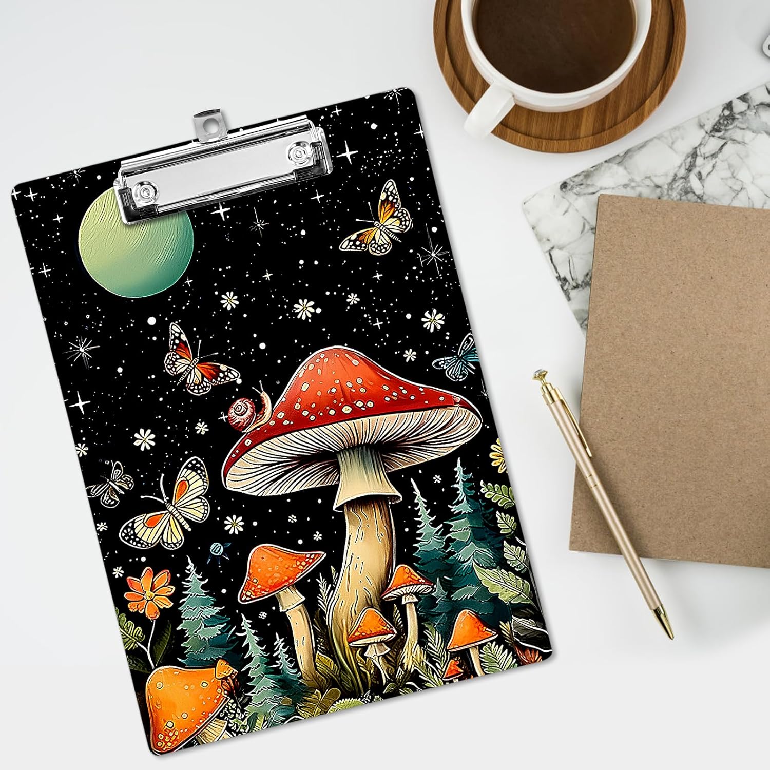Plastic A4 Clipboards, Cute Fashion Clipboard Decorative, 12.2" x 8.7" Standard A4 Size Clipboards, Plastic Acrylic Clipboard for Teacher, Social Worker, Students,Women, Office Supplies(Mushroom)