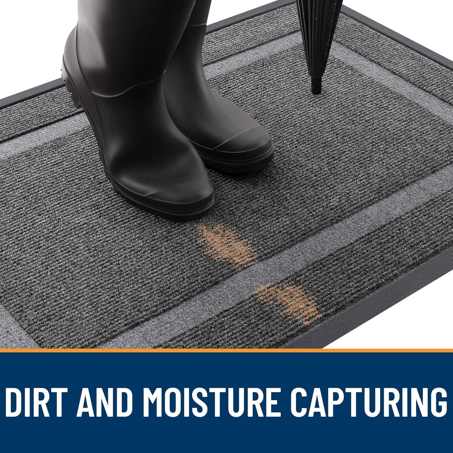 - [CAPTURES DIRT AND MOISTURE] The sturdy woven topside and deep grooves effectively capture dirt, mud, and moisture; the OLANLY door mat is designed to prevent unwanted debris from being tracked into your home.