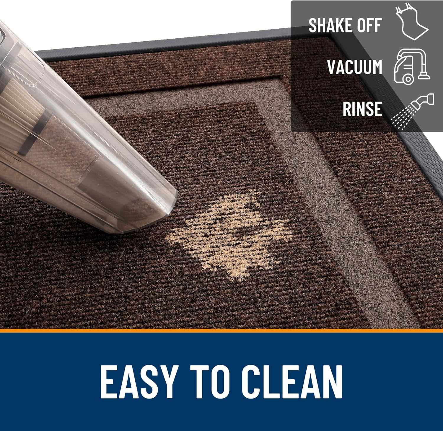 - [EASY TO CLEAN] The OLANLY front door mat is designed for quick and effective cleaning using a vacuum or traditional broom cleaning methods. Additionally, tapping and shaking the back of the doormat helps remove residual debris. For a deeper clean, rinse it with a garden hose and hang the mat in a ventilated place or dry it in a dryer. This versatile cleaning method ensures that your doormat stays clean and tidy, ready to welcome guests.