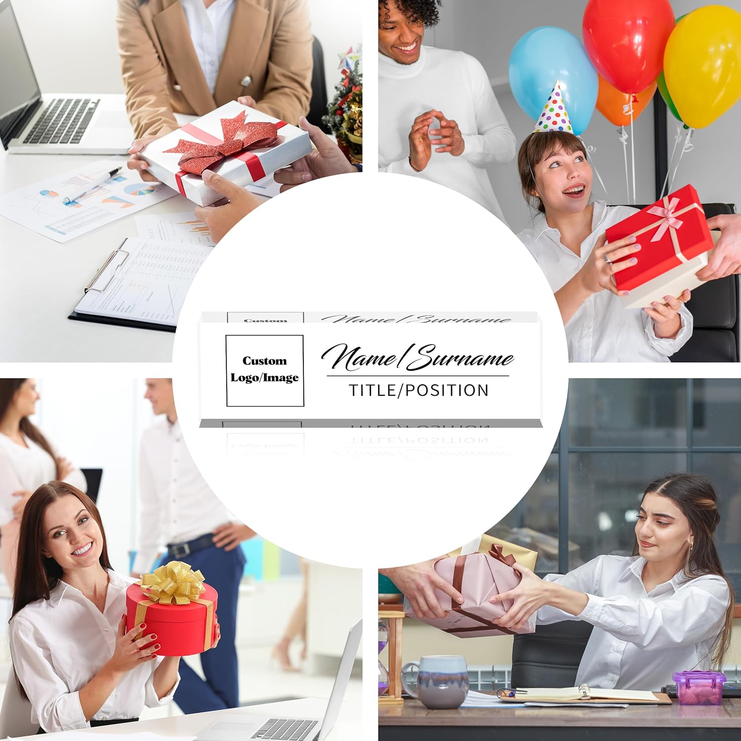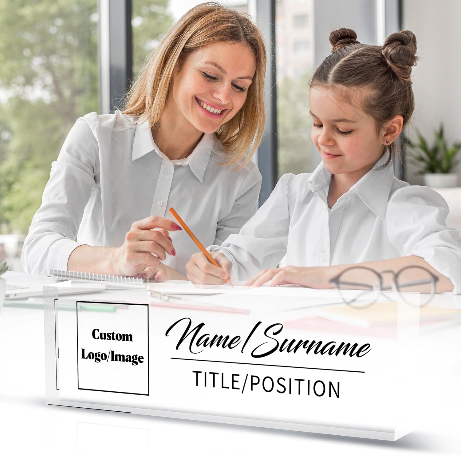 Personalized Name Plate for Desk Custom Acrylic Desk Name Plate Custom Employee Appreciation Gifts Office Gifts for Women, Men, Boss, Coworkers, Teacher, Nurse (Logo/Image)
