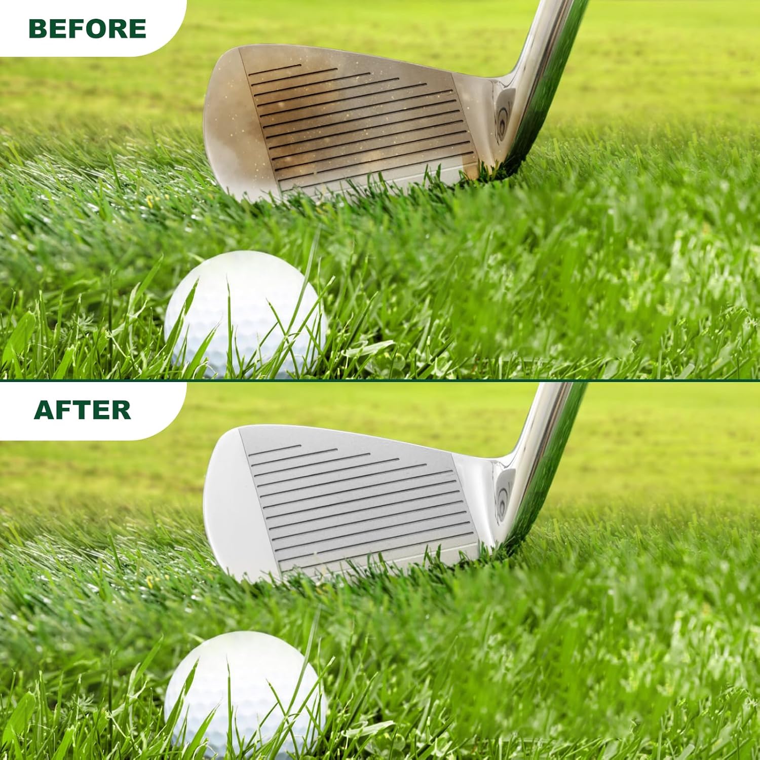 - Extend the Life of Your Clubs: Golf club cleaner and polish kit effectively removes dirt, grass stains, scuffs and rust from grooves, club heads, shafts and grips. By reducing friction between the club head and the ball, it improves performance and keeps your clubs in top condition with every swing, step onto the course with confidence.