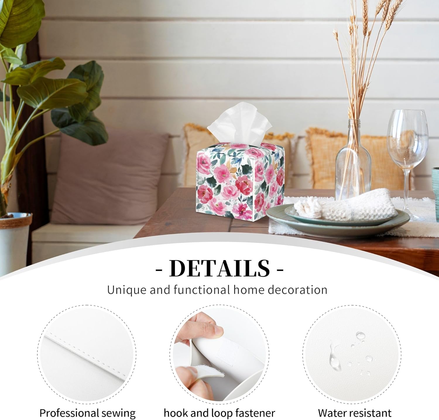 - Fashion Decoration: Our beautifully patterned square tissue box cover can easily hide the monotonous tissue box, and it can decorate any of your homes, add fun to your life, it is perfect for bathrooms, bedrooms, living rooms, kitchens, cars, offices, dressing countertops, bedside tables and coffee tables