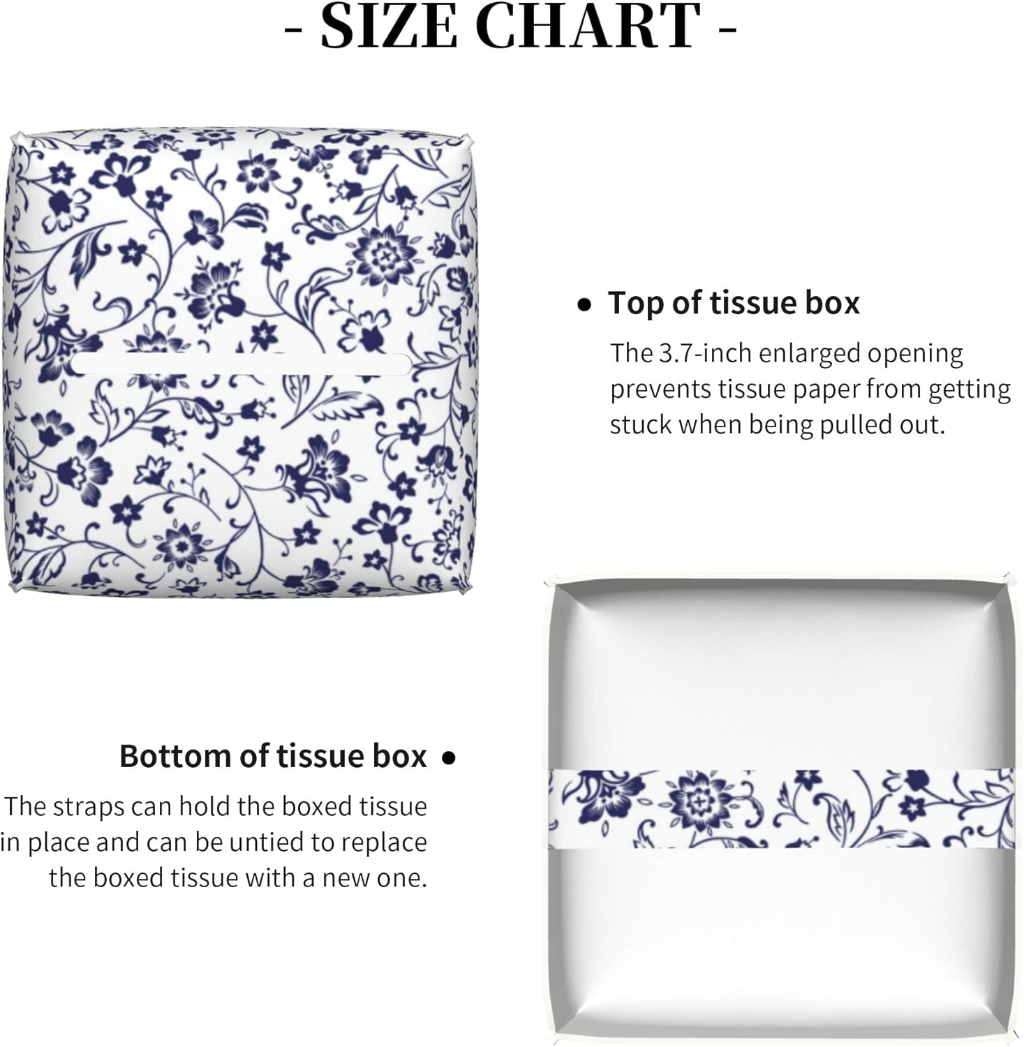 Blue and White Tissue Box Cover Square, Abstract Blue Flowers Tissue Box Holder,Waterproof Leather Facial Paper Organizer Dispenser for Bathroom Home Car Decor