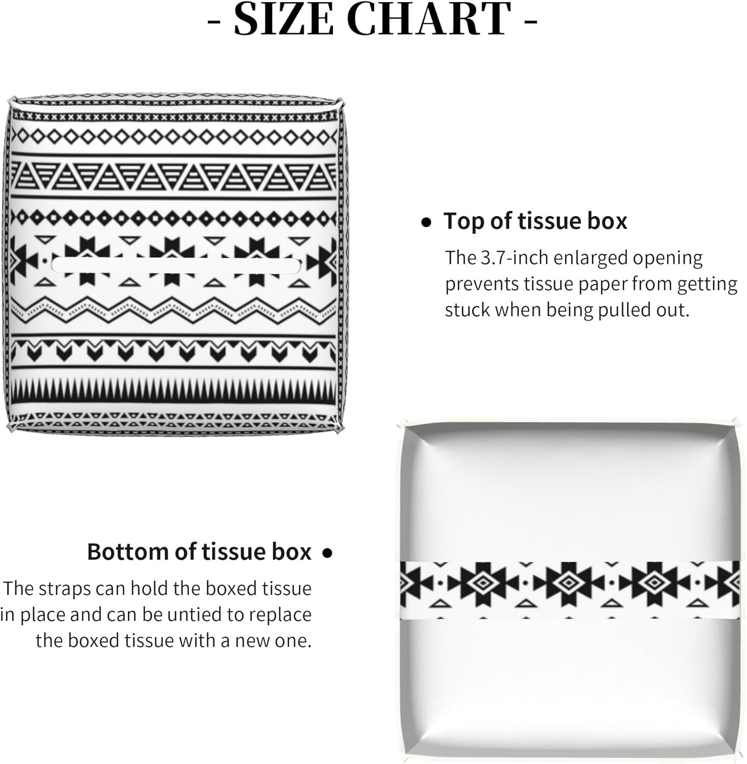 Boho Black White Geometric Tissue Box Cover Square,Abstract Tribal Symbol Tissue Box Holder Waterproof Leather Facial Paper Organizer Dispenser for Bathroom Home Car Nightstand Vanity Desk
