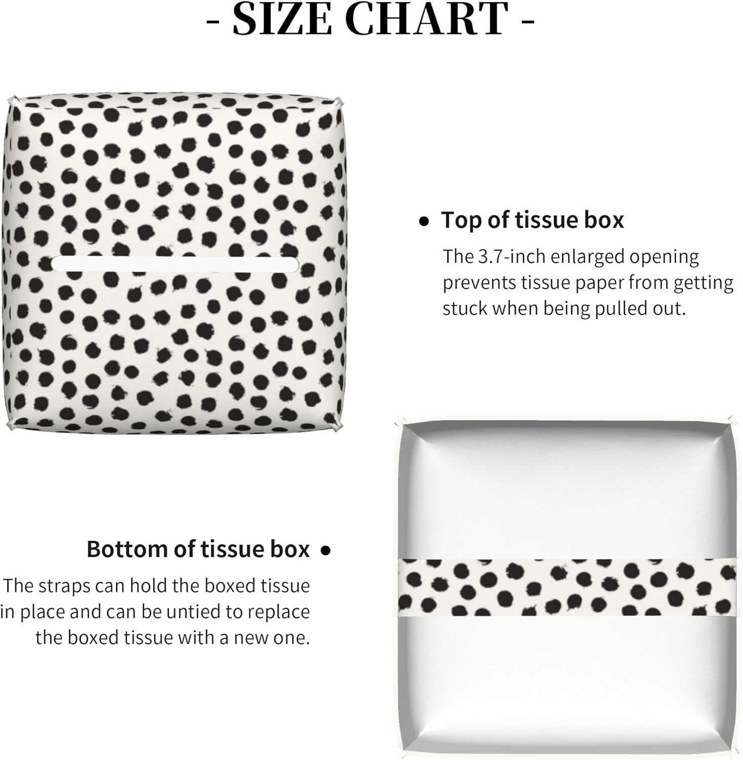 Polka Dot Black Circle Tissue Box Cover Square,Abstract Round Brush Strokes Tissue Box Holder Waterproof Leather Facial Paper Organizer Dispenser for Bathroom Home Car Nightstand Vanity Desk