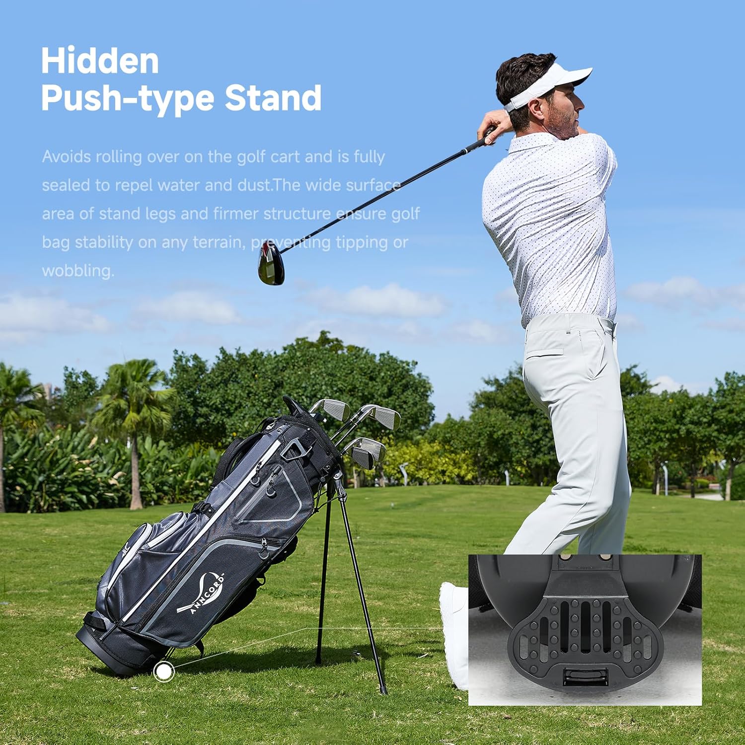 - 【Super Light】This Lightweight golf stand bag is made of premium material which is super lightweight and durable. it weights only 4.4lbs, easy to lift in and out of your car or golf cart.