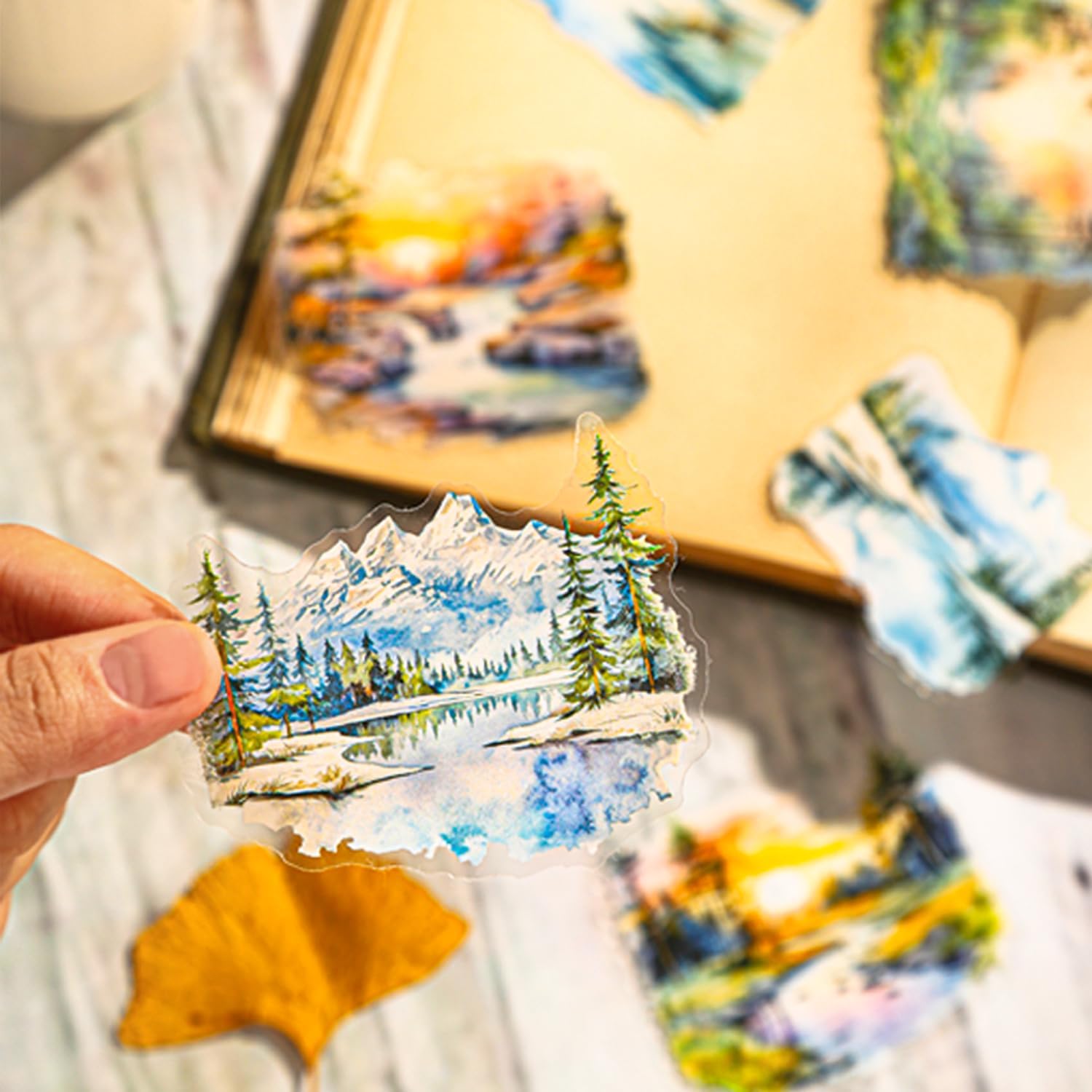 - Nature-Inspired Designs: Embrace the beauty of nature with 60 PET stickers across 6 themes, featuring mountains, forests, and countryside views. Ideal for adding a touch of natural charm to your scrapbook, journal, or any creative project, inspiring a connection with the outdoors