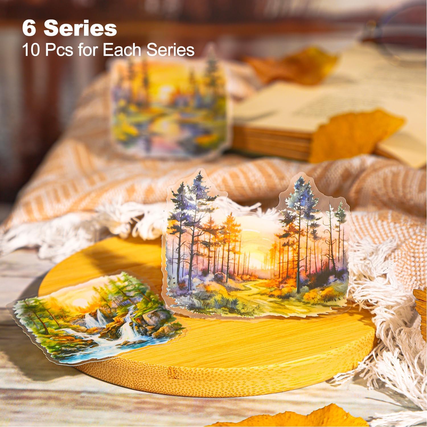 Large Scenery PET Sticker Set, 60Pcs Nature and Countryside Stickers for Scrapbooking, Journaling, DIY Crafts, and Art Supplies