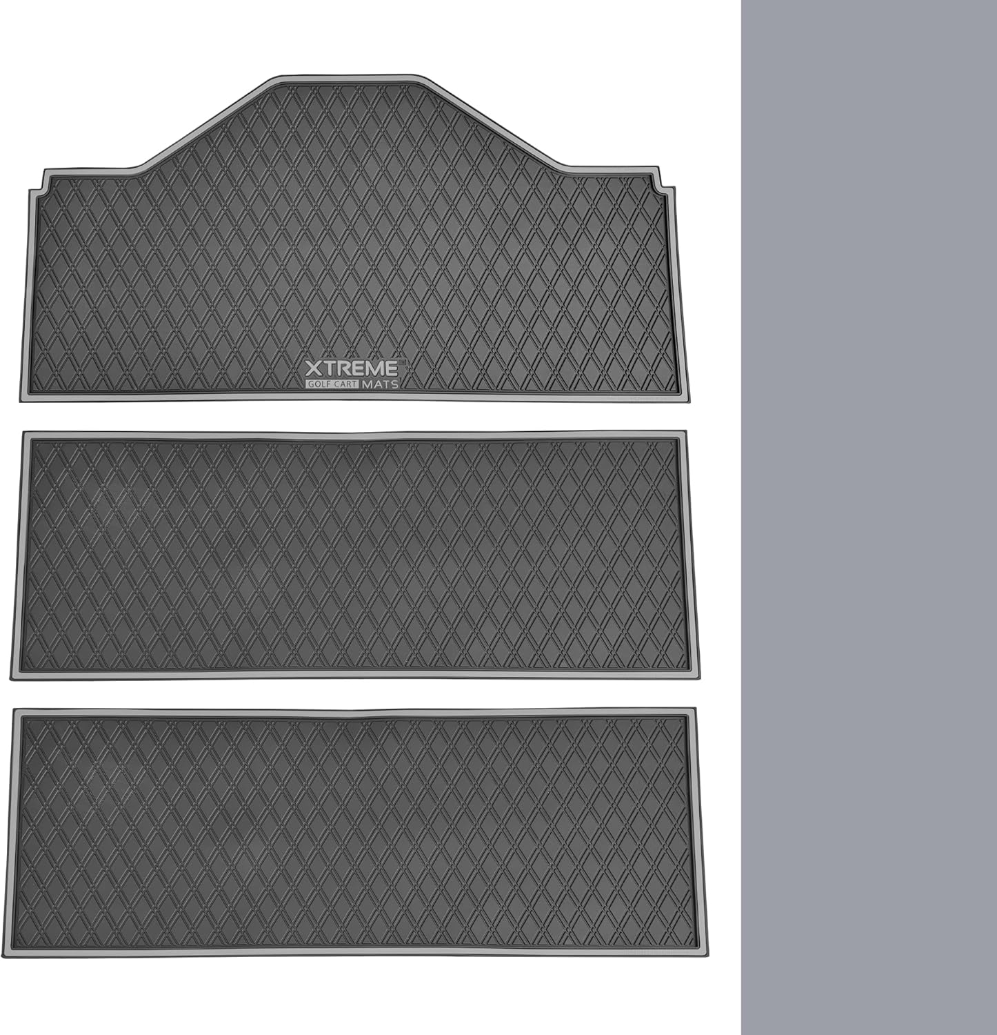 Xtreme MATS Evolution D5 Golf Cart Floor Mat Set- Rubber Double Diamond Design - Fits DMAX, GT 4 & 6, D5 6F Including Maverick and Ranger Trims (Grey Trim, D5 6F 1st, 2nd, & 3rd Rows Forward Facing)