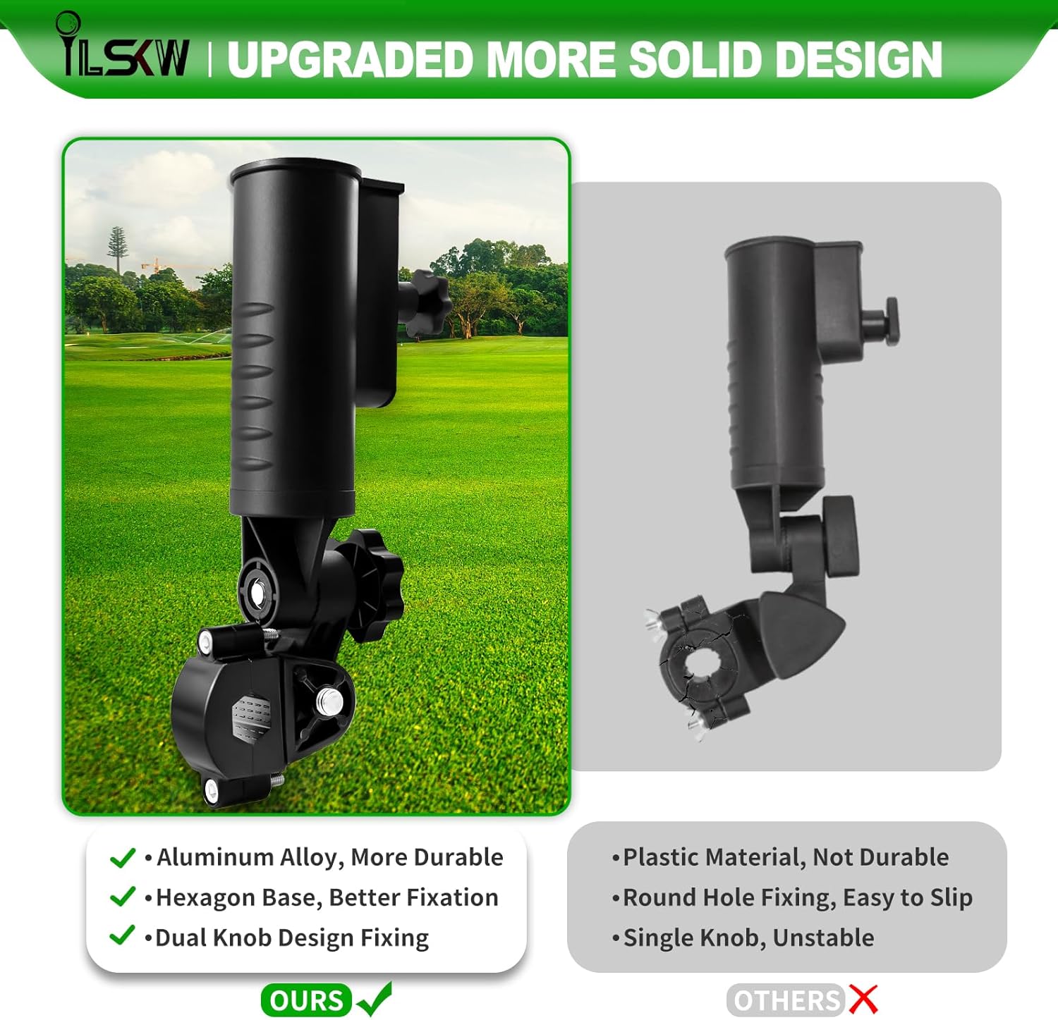 Heavy Duty Golf Cart Flag Holder and Flag Pole Kit for Yamaha, EZGO, Club Car, Upgraded Design Aluminium Alloy Base for Golf Carts, Boat, Vehicles, Golf Push Carts, Included USA Flag (12"×18")